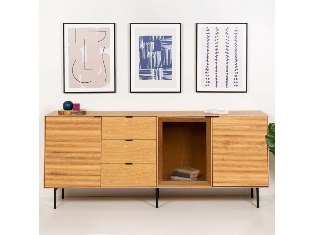 Set tří obrazů Marino od španělské značky Somcasa vkusně ozdobí váš interiér a vnese do něj svěží nádech. Zaujmou vás barvy v námořní modři, které příjemně kontrastují s jemnými béžovými odstíny. Vyladěný triptych tvoří dokonalou kombinaci, která nejlépe zazáří v obývacím pokoji či ložnici. Díky kovovým háčkům ho snadno a pohodlně pověsíte kamkoliv na zeď.