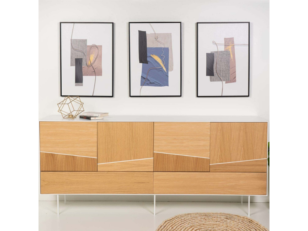 Set tří obrazů Sew od španělské značky Somcasa vkusně ozdobí váš interiér a vnese do něj svěží nádech. Abstraktní obrazy zaujmou výraznými barvami a různými texturami, které spolu ladí a příjemně kontrastují. Vyladěný triptych tvoří dokonalou kombinaci, která nejlépe zazáří v obývacím pokoji či ložnici. Díky kovovým háčkům ho snadno a pohodlně pověsíte kamkoliv na zeď.