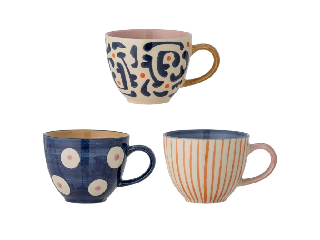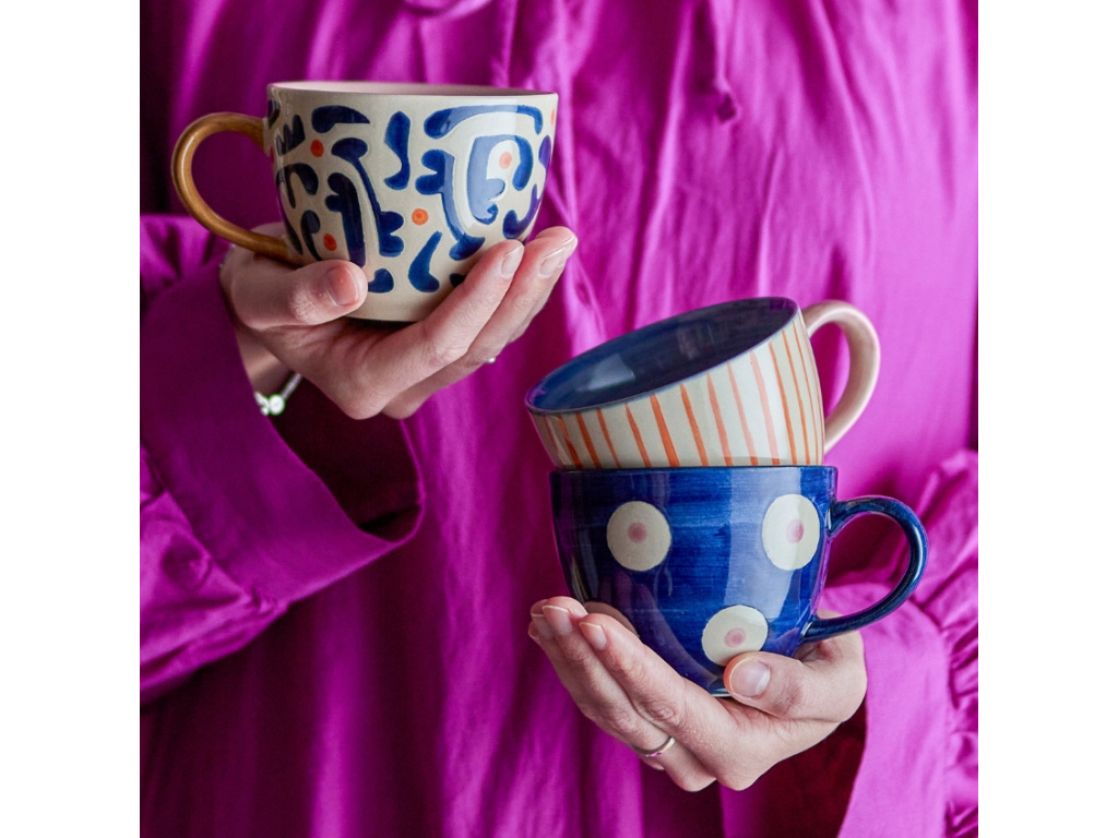Sada hrnků Eviaya v kameninovém provedení je jako stvořená pro chvíle klidu, sdílené snídaně i odpolední posezení s přáteli. Svěží pestré barvy přináší do každodenního stolování nádech pohody i elegance a snadno se kombinuje s dalším nádobím v přírodních nebo neutrálních barvách. Hrníčky skvěle padnou do ruky, jsou odolné a vhodné pro každodenní použití – ideální pro kávu, čaj nebo oblíbený horký nápoj.
