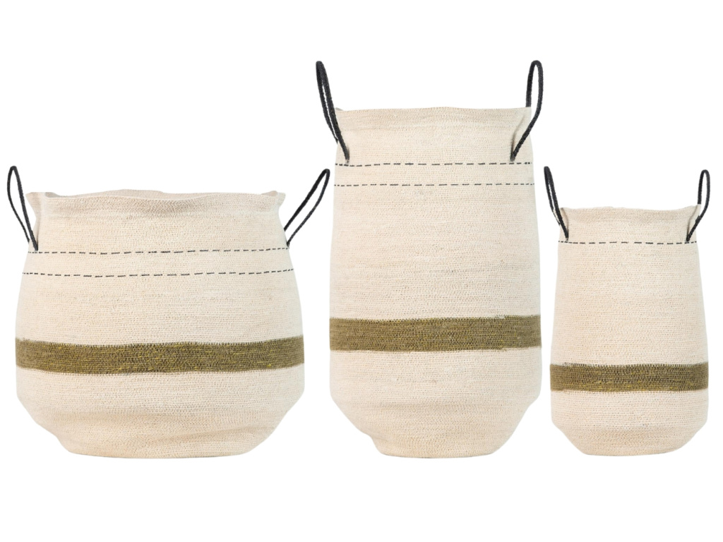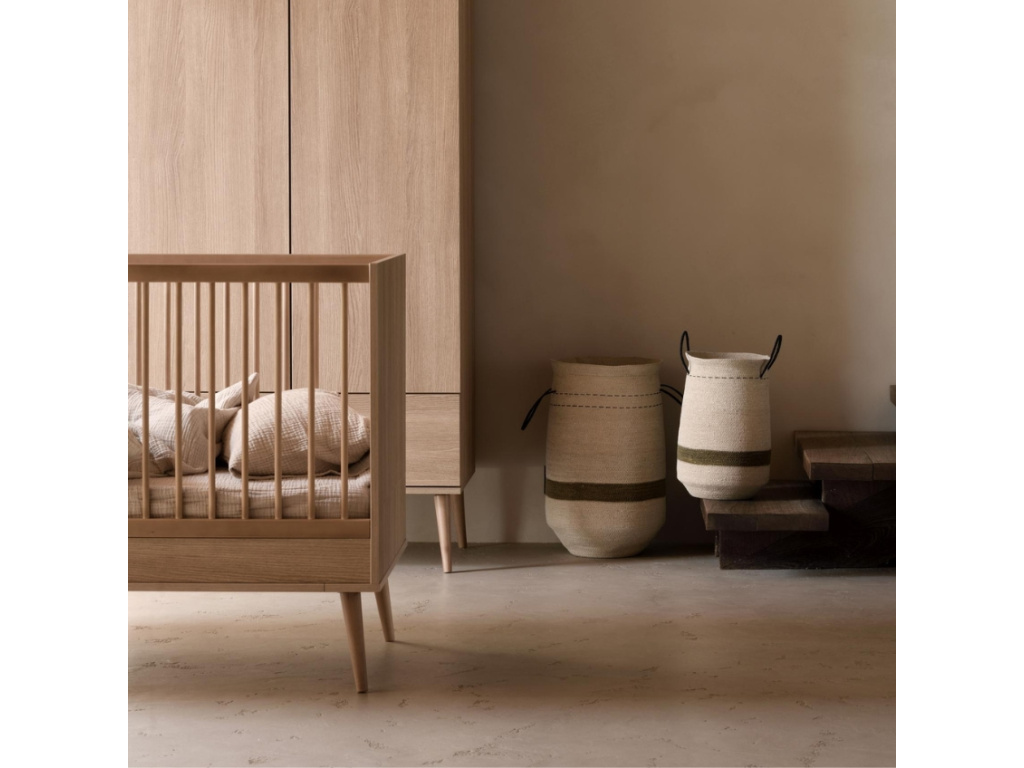 Úložné koše Quax Natural zaujmou svým přírodním materiálem z mořské trávy. Koše mají přírodní béžovou barvu s olivově zeleným pruhem ve spodní části, a doplněné kontrastními úchyty pro snadné přenášení. Jsou ideální například do dětského pokoje, kde pomohou udržet pořádek a stylově zorganizovat hračky i drobnosti.