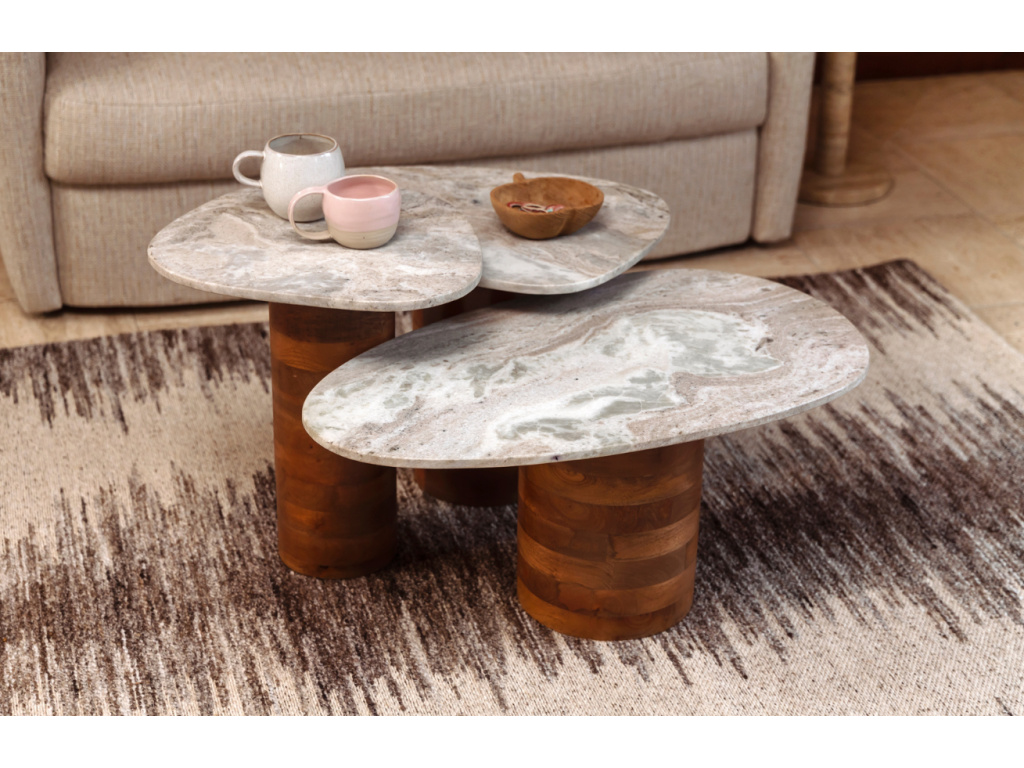 Představujeme vám set tří odkládacích stolků SUKI od značky DUTCHBONE. Desky stolků jsou vyrobeny z bílého mramoru, který podtrhne podnož z mangového dřeva. Tento jedinečný přírodní materiál jednoduše sladíte s barevným i světlejším nábytkem a snadno ho tak začleníte do vašeho interiéru. Dodejte vaší předsíni, pracovně či obývacímu pokoji luxusní vzhled s tímto nadčasovým kouskem.
