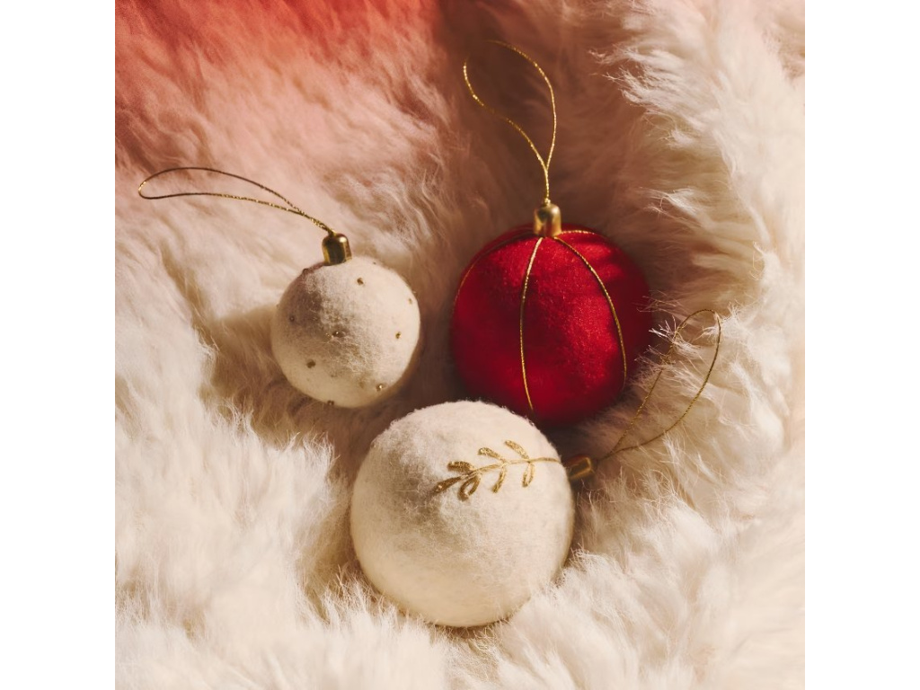 Více infoSet tří červených plstěných vánočních ozdob Kave Home Breshi 7 cm
