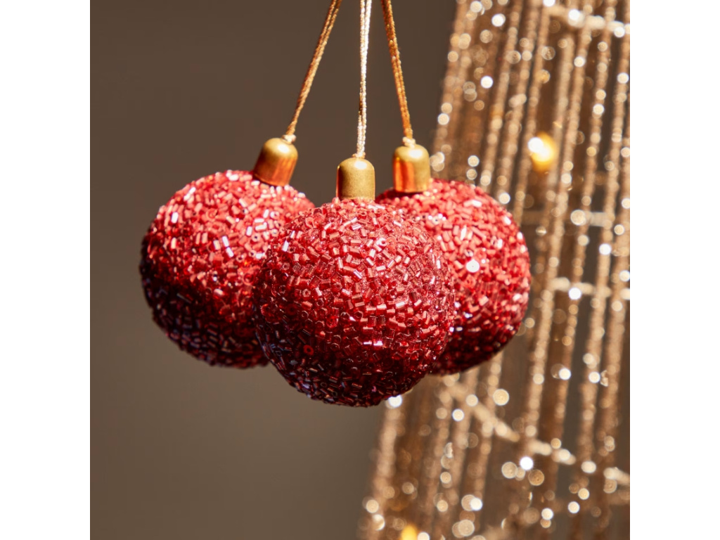 Více infoSet tří červených vánočních ozdob Kave Home Briam 5 cm