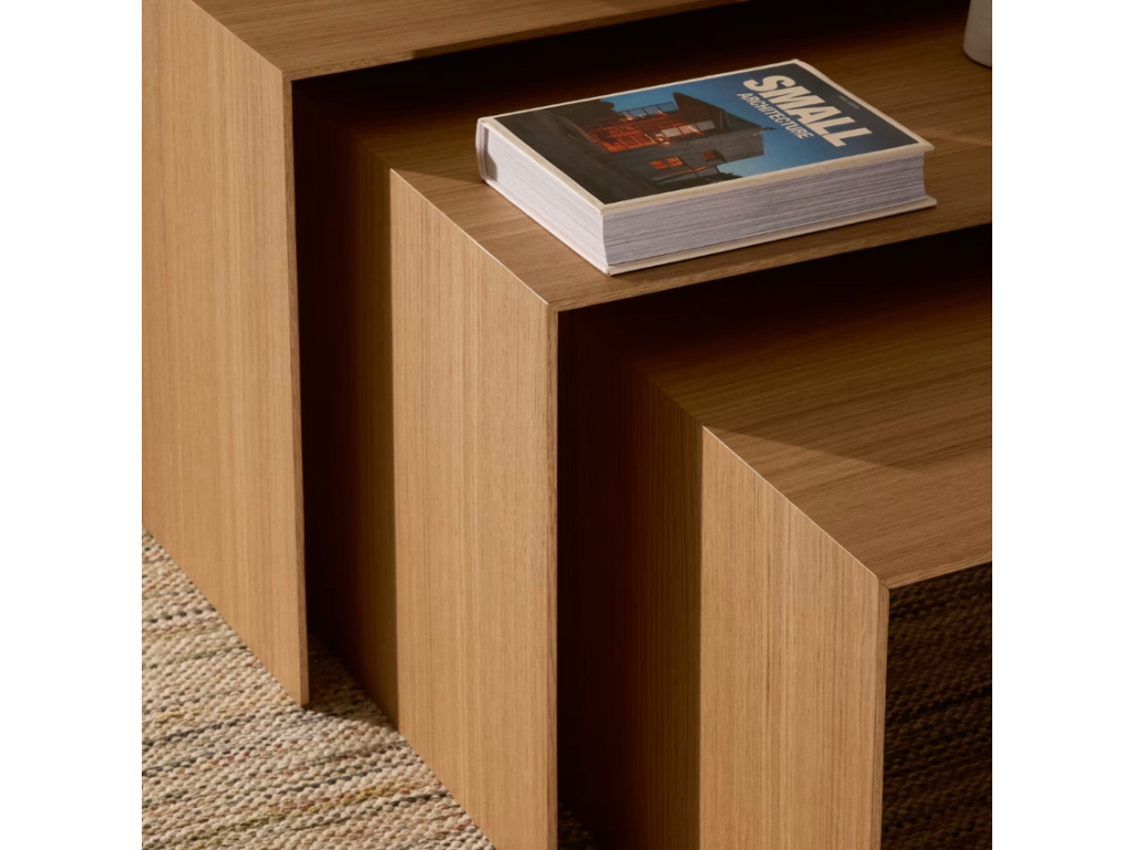 Nábytek Litto od značky Kave Home v sobě kombinuje nadčasovou eleganci a odolnost – nabízí jídelní stoly, konferenční i odkládací stolky a modulární police, které se budou v interiéru skvěle doplňovat. Produkty jsou vyrobeny z dubové dýhy s krásnou výraznou kresbou – díky té vnesou do prostoru nádech útulna a sofistikovanosti. Skvěle se hodí do rustikálních i minimalistických interiérů, slušet jim to bude ve společnosti dalších designovek z přírodních materiálů. Set stolků je navíc vyrobený v praktických odstupňovaných velikostech, takže můžete stolky snadno zasunou pod sebe a kdykoliv tak uvolnit potřebný prostor.