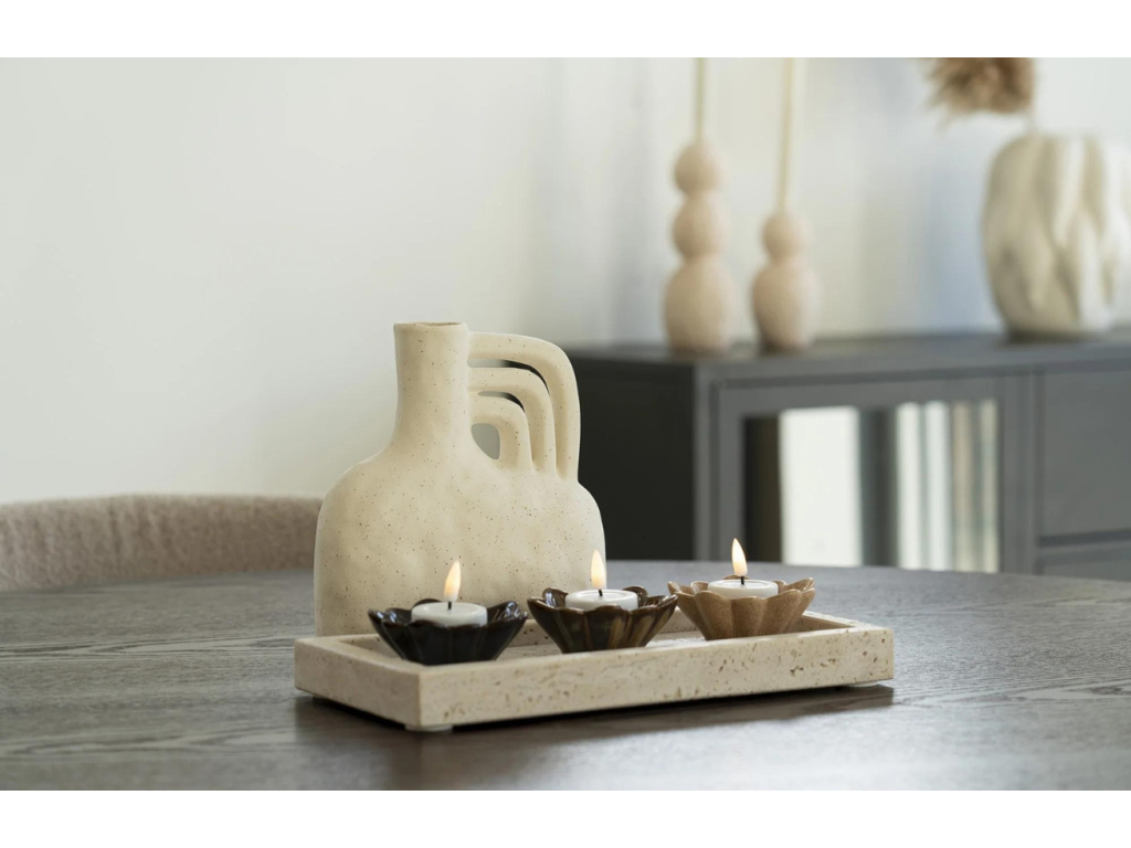 Malé keramické misky Tribow jsou jako stvořené na servání drobného občerstvení – oříšků, sušeného ovoce, omáček i dipů. K jejich odlišení pak jistě oceníte stylovou barevnou kombinaci v hnědých tónech. Výborně se dají využít také jako svícny, kterými můžete oživit váš jídelní stůl nebo komodu.