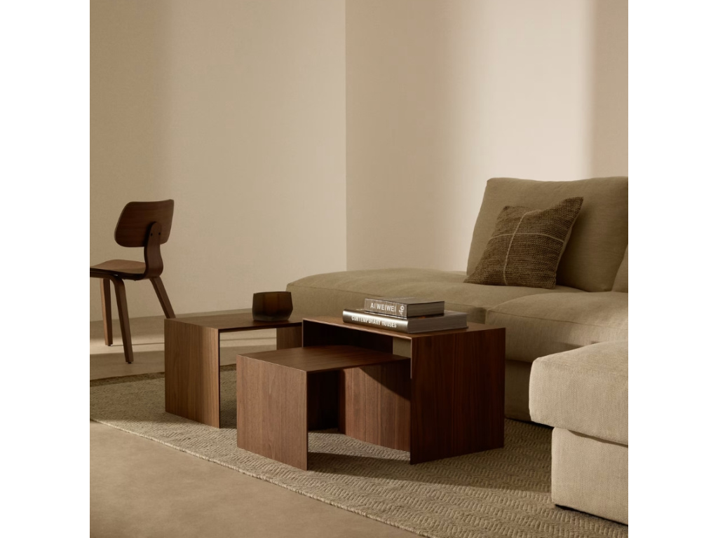 Nábytek Litto od značky Kave Home v sobě kombinuje nadčasovou eleganci a odolnost – nabízí jídelní stoly, konferenční i odkládací stolky a modulární police, které se budou v interiéru skvěle doplňovat. Produkty jsou vyrobeny z ořechové dýhy s krásnou výraznou kresbou – díky té vnesou do prostoru nádech útulna a sofistikovanosti. Skvěle se hodí do rustikálních i minimalistických interiérů, slušet jim to bude ve společnosti dalších designovek z přírodních materiálů. Set stolků je navíc vyrobený v praktických odstupňovaných velikostech, takže můžete stolky snadno zasunou pod sebe a kdykoliv tak uvolnit potřebný prostor.