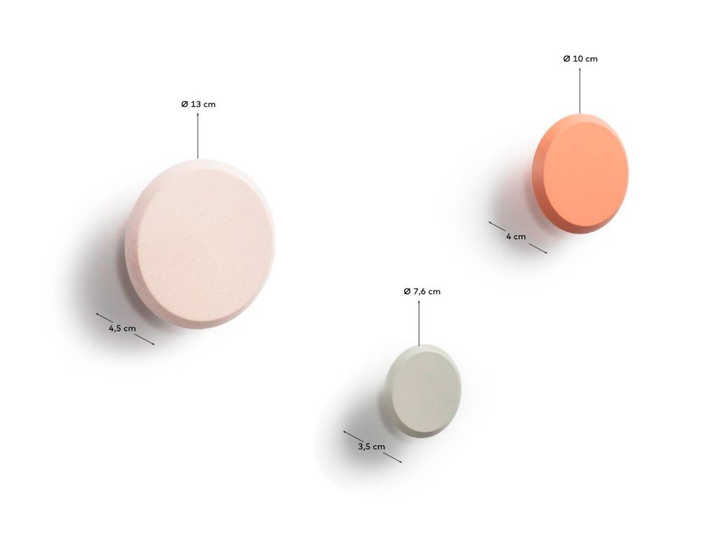 Set nástěnných věšáků Kave Home Nadua obsahuje tři různě velké věšáky z masivního bukového dřeva. Set je dostupný v několika barevných variantách. Věšáky můžete na zdi hravě rozmístit a jejich barvy stylově zkombinovat.