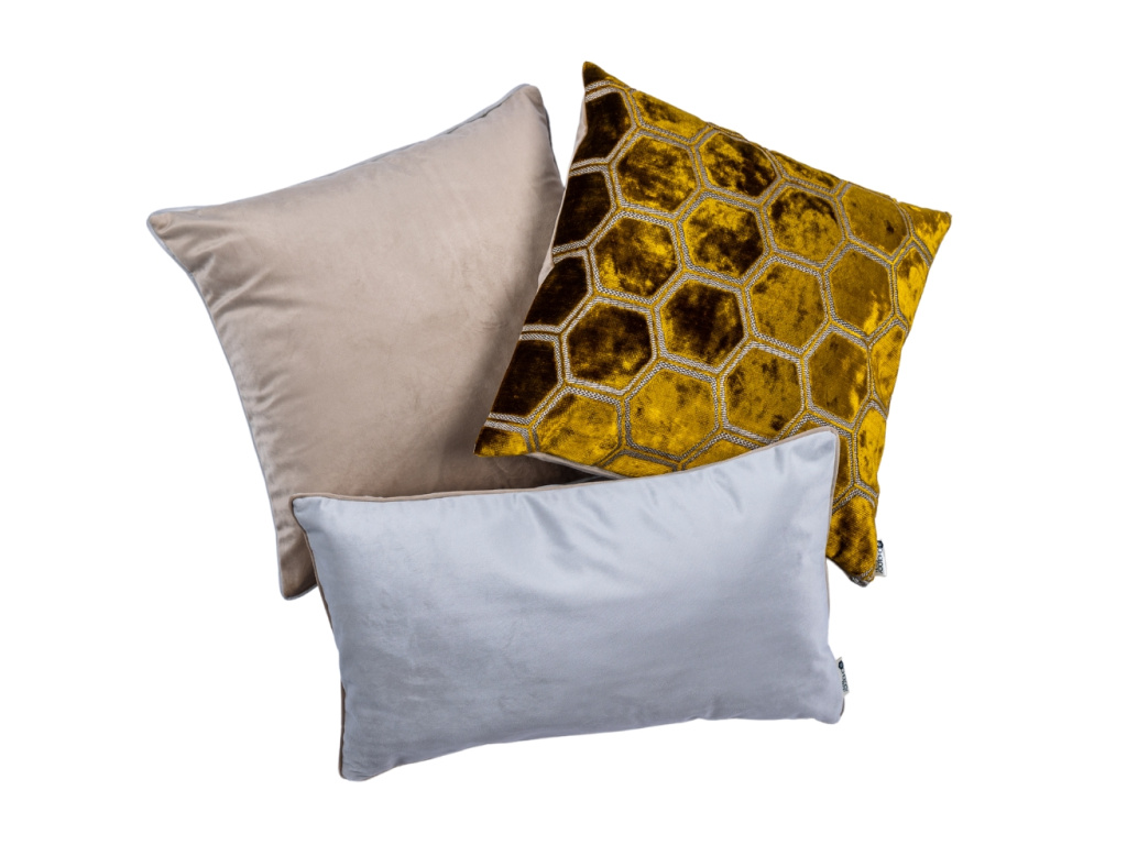 Více infoSet tří povlaků na polštář Hexagon - béžový, zlatý, šedý