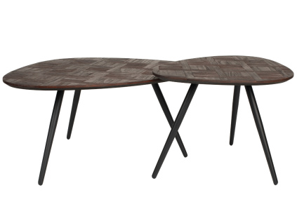 Konferenční stolky CUTIES od značky White Label Living vás zaujmou již na první pohled svým atypickým tvarem a minimalistickým designem. Kombinuje se zde dřevo a kov, což vždy vytváří příjemný kontrast a nadčasový vzhled. Povrch desek se pyšní nádhernou teakovou dýhou, která svojí přirozenou strukturou vytváří jedinečný charakter stolků. Stabilitu stolku dodává elegantní podnož z černě lakovaného kovu s hladkým povrchem. Stolky CUTIES se budou vyjímat společně i samostatně v moderních prostorech, avšak slušet jim to bude například i ve vintage a klasicky laděných prostorech.