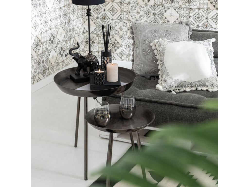 Elegantní set odkládacích stolků Treyon vám pomůže zajímavě ozdobit každý interiér. Stolky využijete k vystavení dekorací i naservírování nápojů. Použitý materiál zajišťuje perfektní odolnost i stabilitu stolků - jejich desky i podnože jsou vyrobeny z lakovaného kovu. Set můžete stylově seskládat k sobě, nebo jednotlivé stolky rozmístit po pokoji.