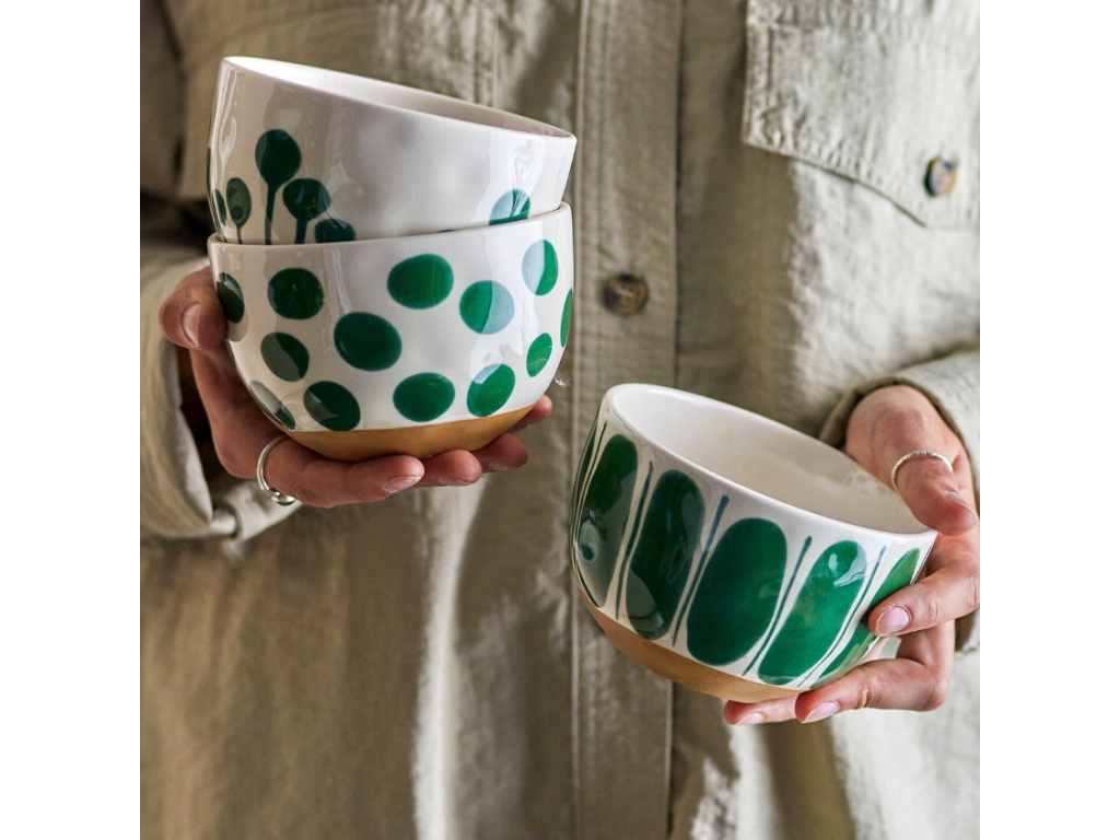 Vneste do každého jídla klid a krásu severského designu. Sada misek Linora v jemném zeleném kameninovém provedení okouzlí svou jednoduchostí a nepravidelnou glazurou. Misky jsou ideální pro podávání snídaňových kaší, salátů, dezertů i drobného občerstvení. Jejich klidná zelená tónina působí harmonicky a snadno se kombinuje s dalším nádobím ve světlých nebo zemitých odstínech. Kamenina je pevná a odolná – ideální pro každodenní použití i slavnostní chvíle. Set Linora udělá z vašeho stolování vizuální i chuťový zážitek.