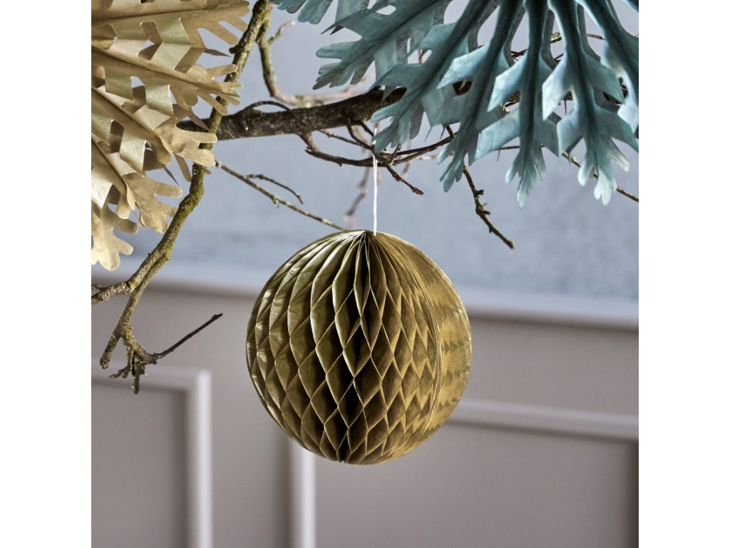 Podívám seSet tří zlatých papírových vánočních ozdob Ornaments