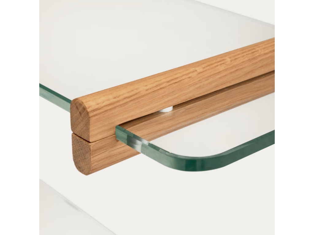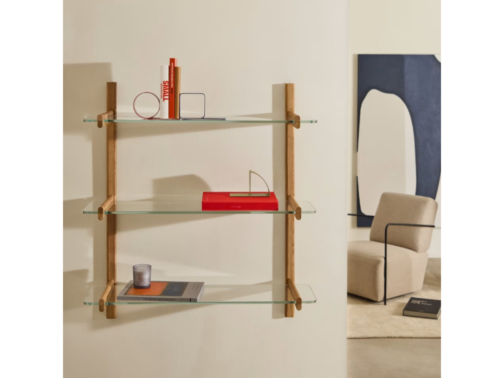 Dodejte svému interiéru svěží nádech moderního severského designu s modulární policí Sitra od Kave Home. Celkem tři skleněné police doplňuje konstrukce z masivního dubového dřeva s certifikací FSC, která zajišťuje, že dřevo pochází z udržitelně a zodpovědně obhospodařovaných lesů. Jednoduchá montáž umožní snadnou kombinaci s dalšími policemi z kolekce Sitra. Můžete si tak vytvořit jedinečný policový díl dle vašich potřeb a osobního vkusu. Police obohatí nejednu prázdnou zeď vaší ložnice či obývacího pokoje a vytvoří praktické místo pro umístění knih, dekorací a květin.