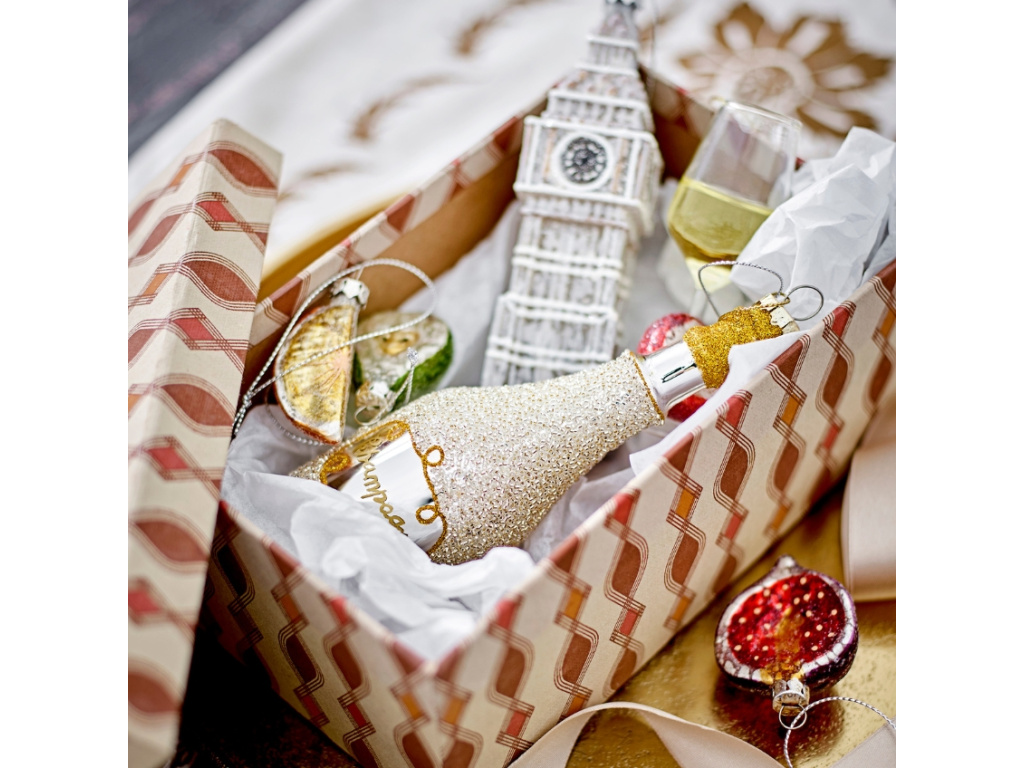 Zahalte svůj stromeček do špetky noblesy a pořádné dávky pohody. Sklenka vína jako vánoční ozdoba? Proč ne! Tato designová ozdoba Ketti z ručně foukaného skla vypadá jako skutečná sklenka bílého vína – jen tak akorát nakloněná, jako by zrovna připíjela na klidné svátky. S výškou 18 cm a jemným zlatým závěsem se stane nepřehlédnutelným kouskem na každé větvi. Bude také ideálním dárkem pro vinaře nebo kohokoli, kdo má smysl pro styl a nadsázku.