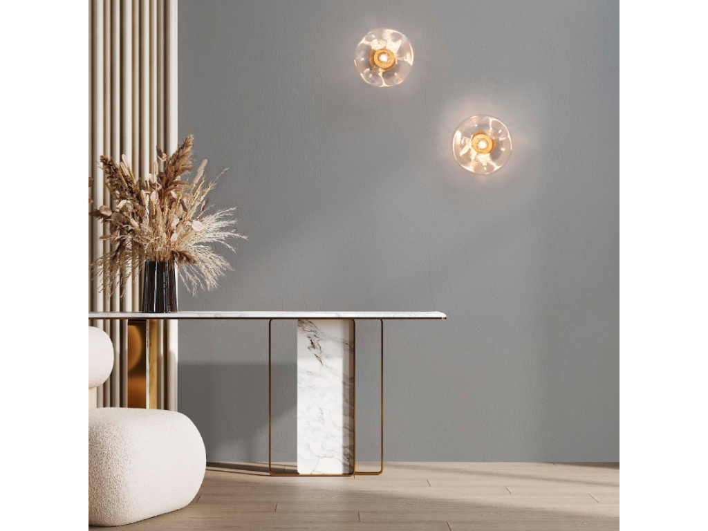 Elegantní kolekce světel King od Nova Luce vás na první pohled okouzlí svým jedinečným designem. Stínidla jsou vyrobena z foukaného skla v krásném organickém tvaru, který připomíná kapku vody. Třešničku na dortu tvoří vzduchové bublinky uvnitř skla, které působí velice autenticky. Originální stínidlo doplňuje kovové zavěšení v barvě starožitné mosazi. S touto unikátní designovkou vykouzlíte příjemné osvětlení a zároveň přinesete do svého domova kousek přírody. Nechte světlo zazářit nad jídelním stolem nebo konferenčním stolkem a kochejte se jeho krásou!
