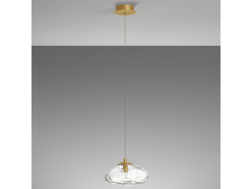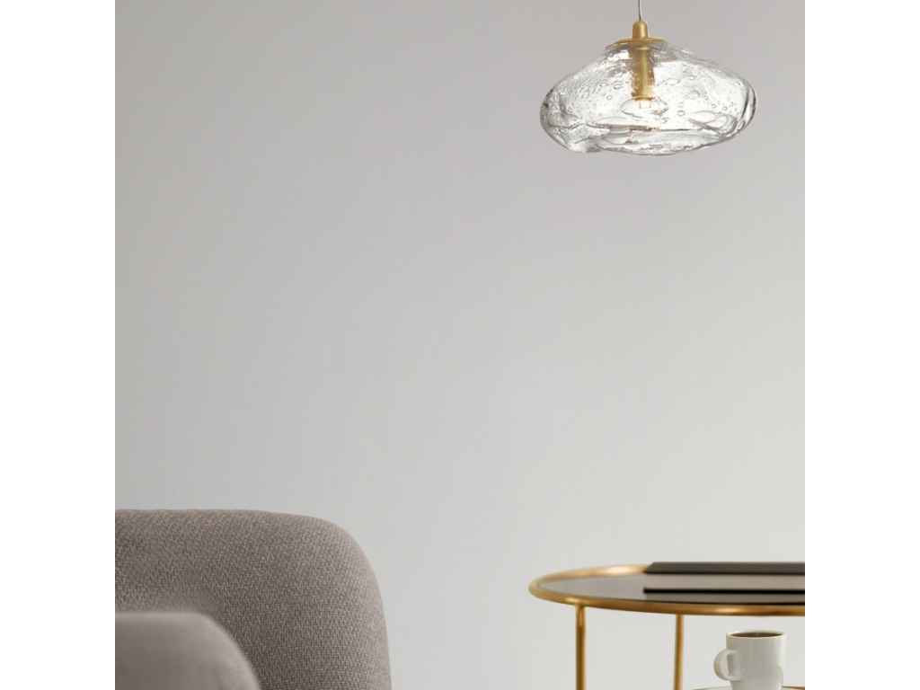 Elegantní závěsná světla King od Nova Luce vás na první pohled okouzlí svým jedinečným designem. Stínidlo je vyrobeno z foukaného skla v krásném organickém tvaru, který připomíná kapku vody. Třešničku na dortu tvoří vzduchové bublinky uvnitř skla, které působí velice autenticky. S touto unikátní designovkou vykouzlíte příjemné osvětlení a zároveň přinesete do svého domova kousek přírody. Nechte světlo zazářit nad jídelním stolem nebo konferenčním stolkem a kochejte se jeho krásou!