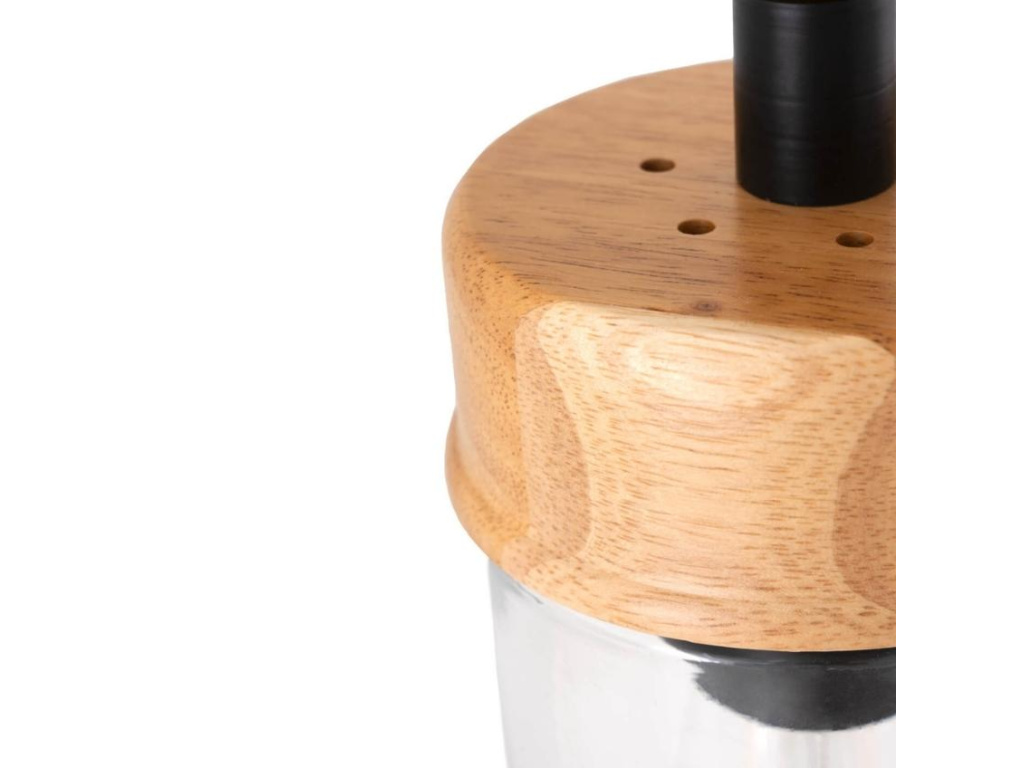 Stropní závěsné světlo Somcasa Biar je jedinečným designovým doplňkem každého interiéru. Skládá se ze tří různých materiálů. Černé kovové uchycení je užitečným prvkem pro nízké stropy nebo terasy. Dřevěný kryt svítidla je elegantním a lehkým prvkem celého svítidla. Transparentní skleněné stínidlo dodává světlu jemný a čistý nádech.