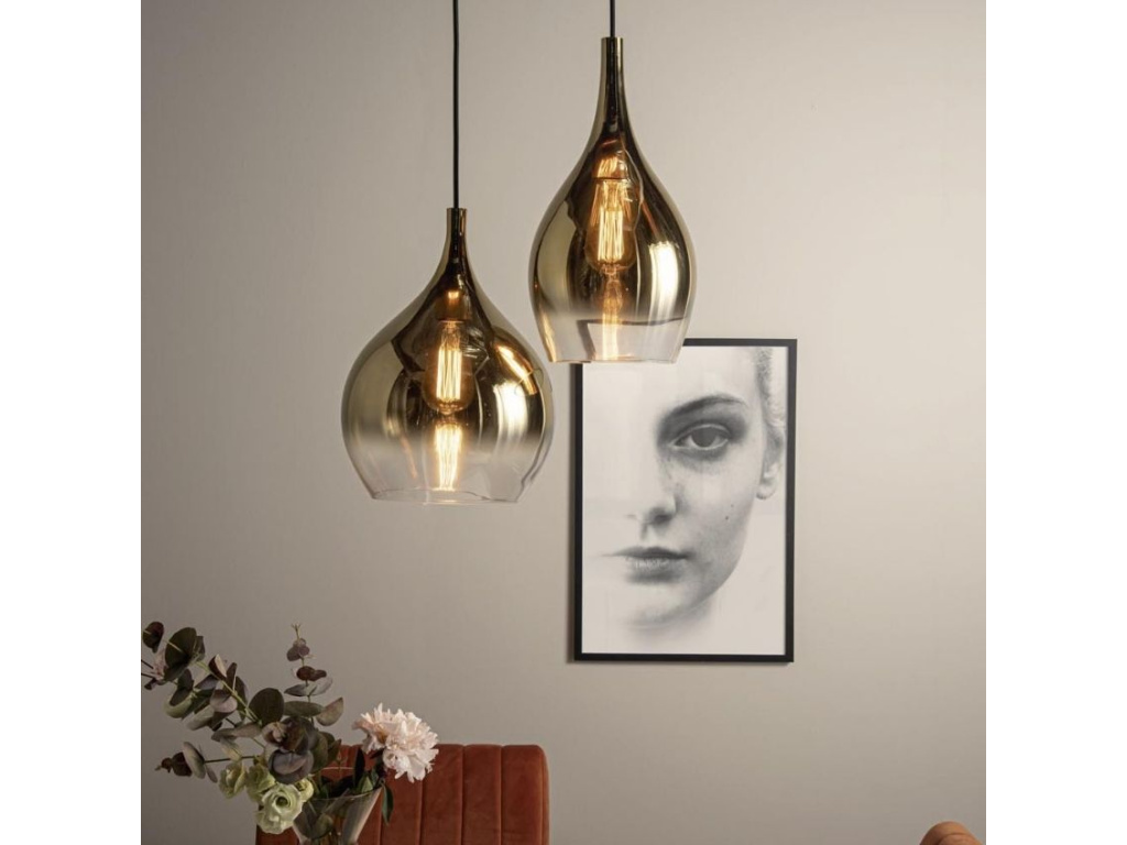 Více infoSkleněné zlaté závěsné světlo Terriana M 26 cm