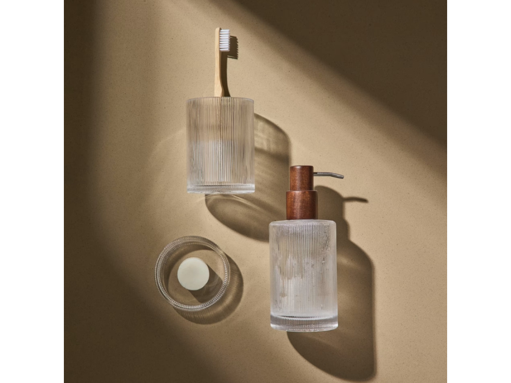 Série koupelnových doplňků Arlem přinese do vaší koupelny eleganci a nadčasovost. Vyrobena z transparentního skla s jemně plastickým dekorem, působí vzdušně a dokonale se přizpůsobí jakémukoli stylu – od moderního až po klasický. Kolekce zahrnuje misku na mýdlo, dávkovač na tekuté mýdlo a stojan na zubní kartáčky, které lze krásně kombinovat do jednotného celku. Strukturované sklo odráží světlo a vnáší do prostoru lehký lesk i sofistikovanost – i malé doplňky tak získávají vizuální sílu. Arlem – když minimalistický design září v každém detailu.