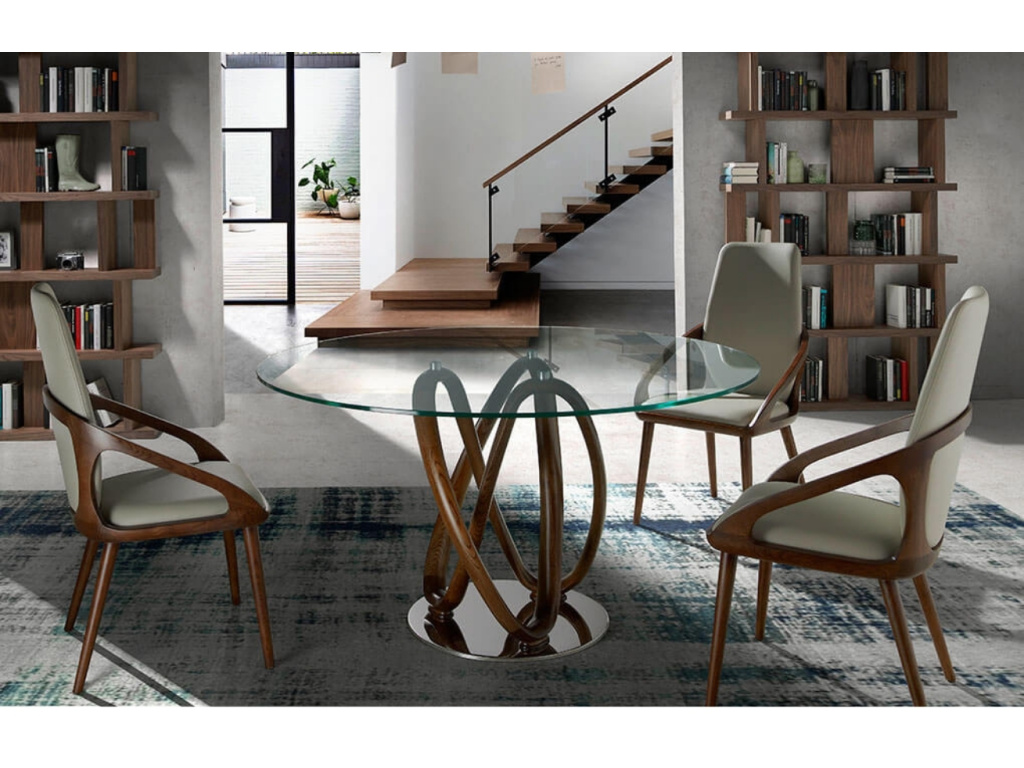 Kulatý jídelní stůl Angel Cerdá 1021 vyniká svou elegantní kombinací skla a masivního jasanového dřeva v barvě ořechu. Průhledná skleněná deska dodává stolu lehkost a hravý moment, kdy je skrze ni vidět na kontrastně robustní dřevěnou podnož originálního tvaru. Tento stůl se stane výrazným prvkem každé jídelny, a to díky svému avantgardnímu designu a pocitu prostornosti, který vytváří.Vybírat můžete ze dvou dostupných velikostí stolové desky.