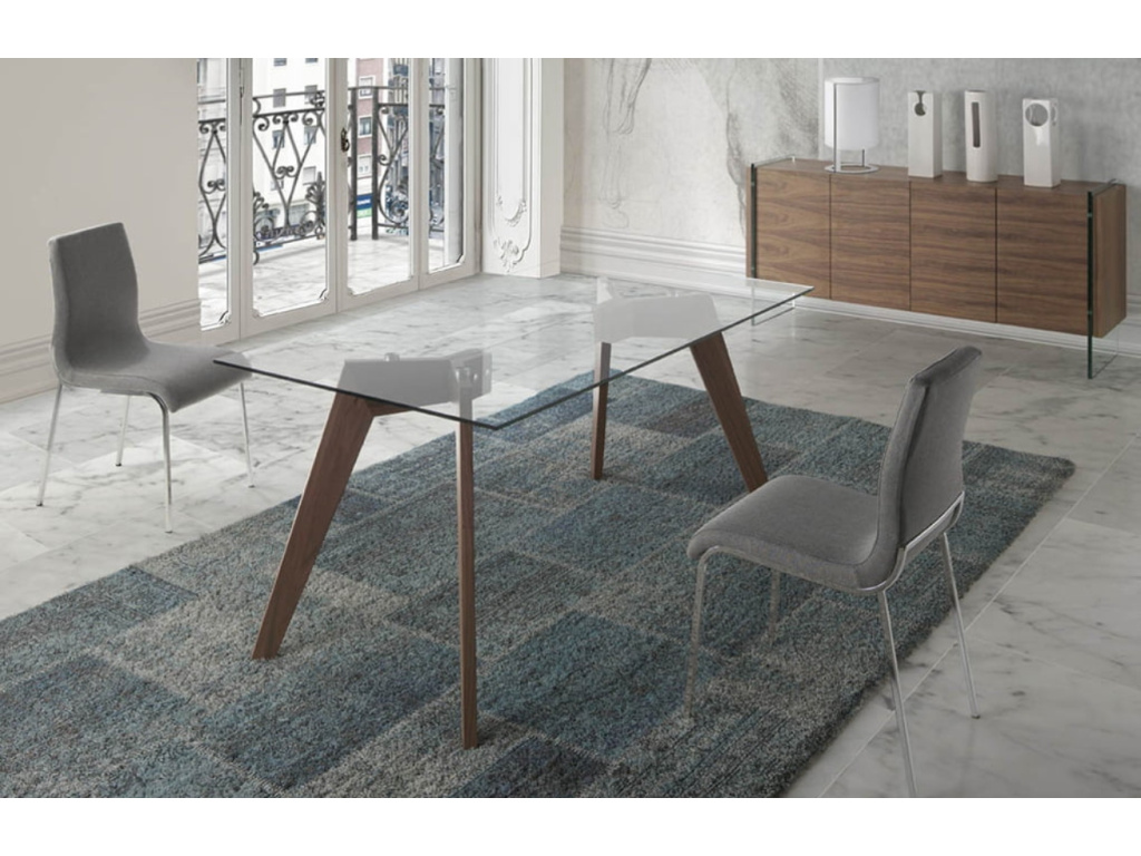 Angel Cerdá přináší jídelní stůl jednoduchého čistého designu. Jeho transparentní deska z tvrzeného skla naplní váš interiér svěžím vzdušným dojmem. Kontrastem k ní je masivní pevná podnož z ořechové dýhy, která oproti desce celému vzhledu dodává pocit uzemnění a stability. Zkombinujte tento stůl s dalším nábytkem se skleněnými prvky a dejte tak světlo vaší moderní jídelně nebo kuchyni.