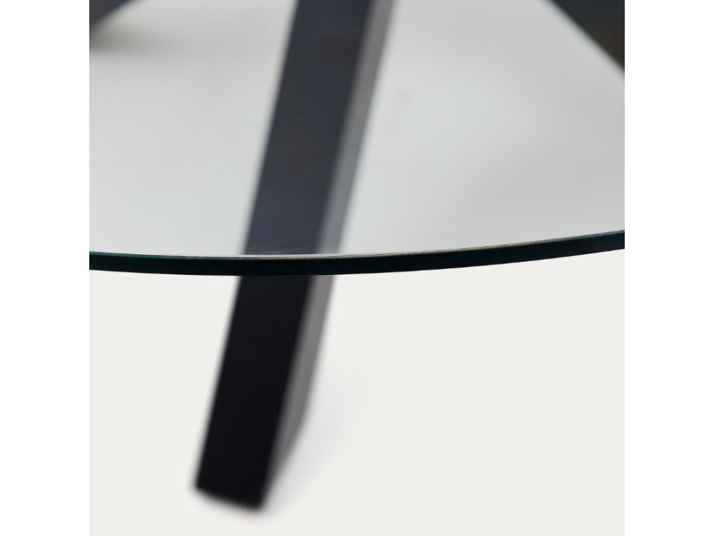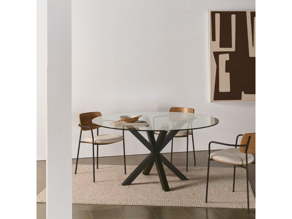 Krásný a nadčasový kulatý jídelní stůl Kave Home Argo vás na první pohled zaujme svým originálním a propracovaným designem. Podnož zajišťující perfektní stabilitu je vyrobena z černě lakované oceli a má zajímavý tvar připomínající hvězdu. Desku tvoří transparentní tvrzené sklo. Tento jídelní stůl se bude vyjímat zejména v moderních interiérech.