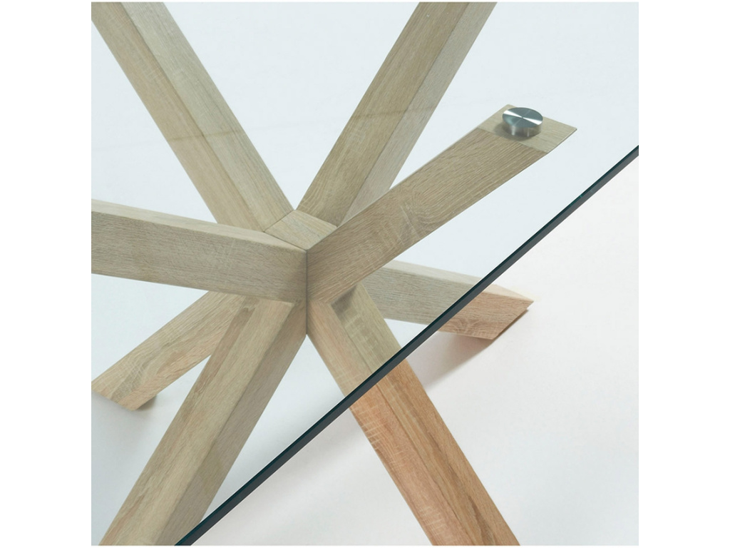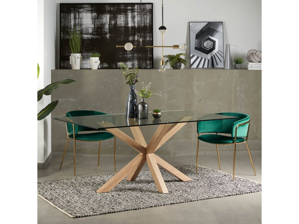Krásný a nadčasový jídelní stůl Kave Home Argo vás na první pohled zaujme svým originálním a propracovaným designem. Jeho ocelová podnož v přírodním dřevěném dekoru má zajímavý tvar připomínající hvězdu. Zajišťuje perfektní stabilitu a navíc každého na první pohled zaujme. Desku tvoří tvrzené sklo a skvěle se s podnoží doplňuje. Tento jídelní stůl se bude vyjímat zejména v moderních interiérech.