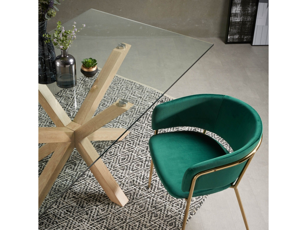 Podívám seSkleněný jídelní stůl Kave Home Argo 180 x 100 cm s přírodní kovovou podnoží