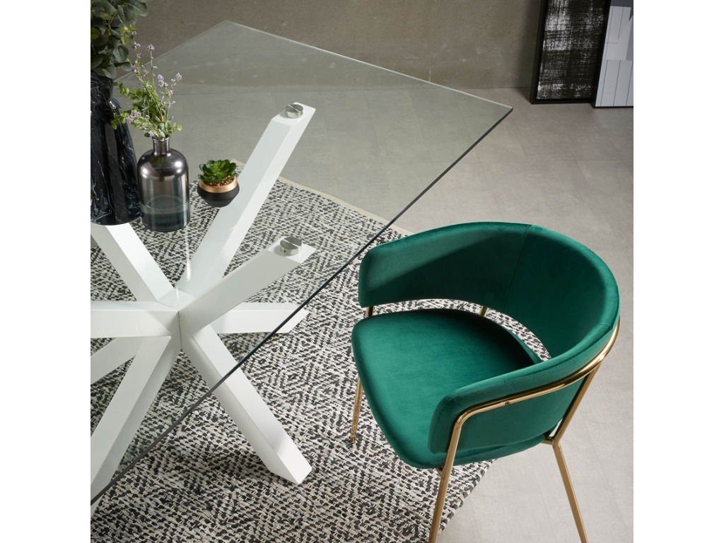 Krásný a nadčasový jídelní stůl Kave Home Argo vás na první pohled zaujme svým originálním a propracovaným designem. Podnož zajišťující perfektní stabilitu je vyrobena z bíle lakované oceli a má zajímavý tvar připomínající hvězdu. Desku tvoří tvrzené sklo. Tento jídelní stůl se bude vyjímat v moderních interiérech a ve stylu scandi.