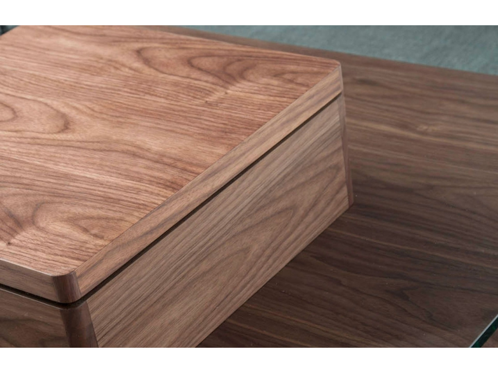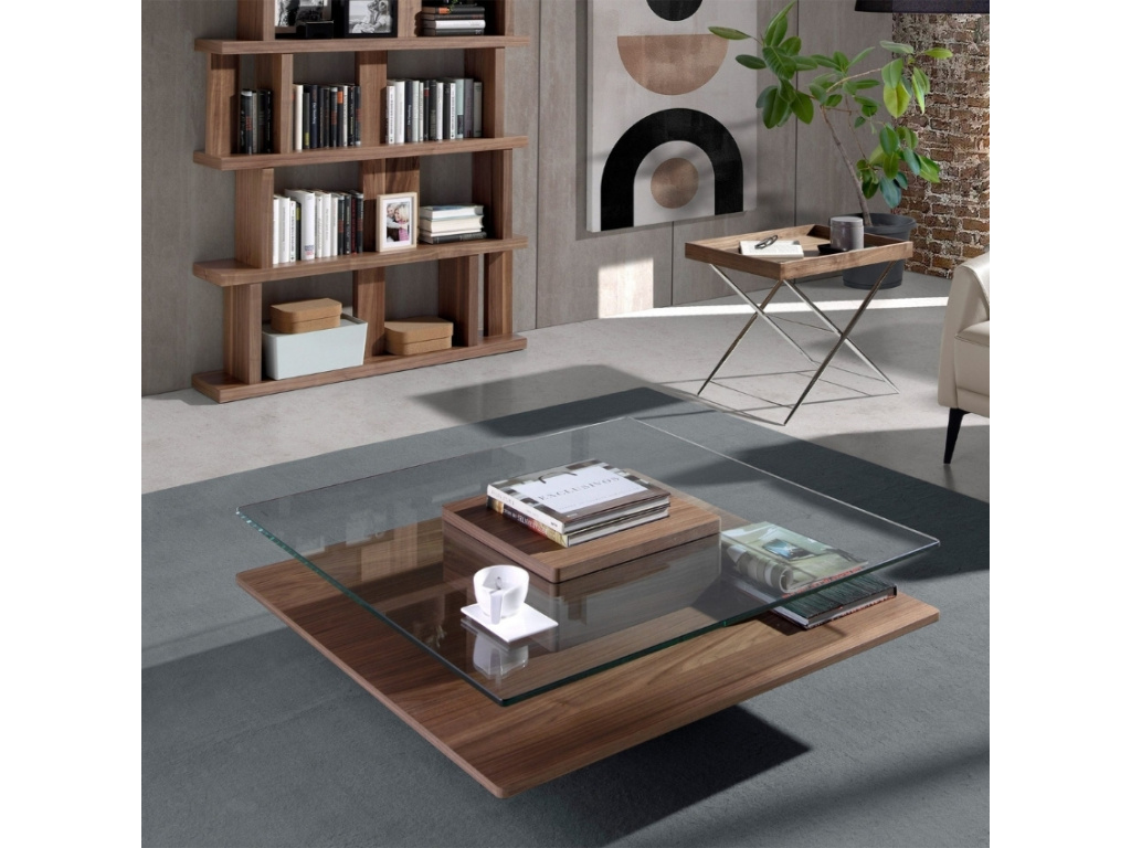 Minimalistický a přitom výrazný – tento čtvercový konferenční stolek se stane sofistikovaným doplňkem vašeho interiéru. Deska z tvrzeného skla v kombinaci s přírodní ořechovou dýhou vytváří harmonickou souhru materiálů, která podtrhne moderní ráz obývacího pokoje. Čisté linie a vyvážené proporce umožní snadné začlenění do prostoru, kde bude působit lehce, ale zároveň nepřehlédnutelně. Ideální volba pro interiéry v duchu skandinávské elegance nebo městského industriálního stylu.
