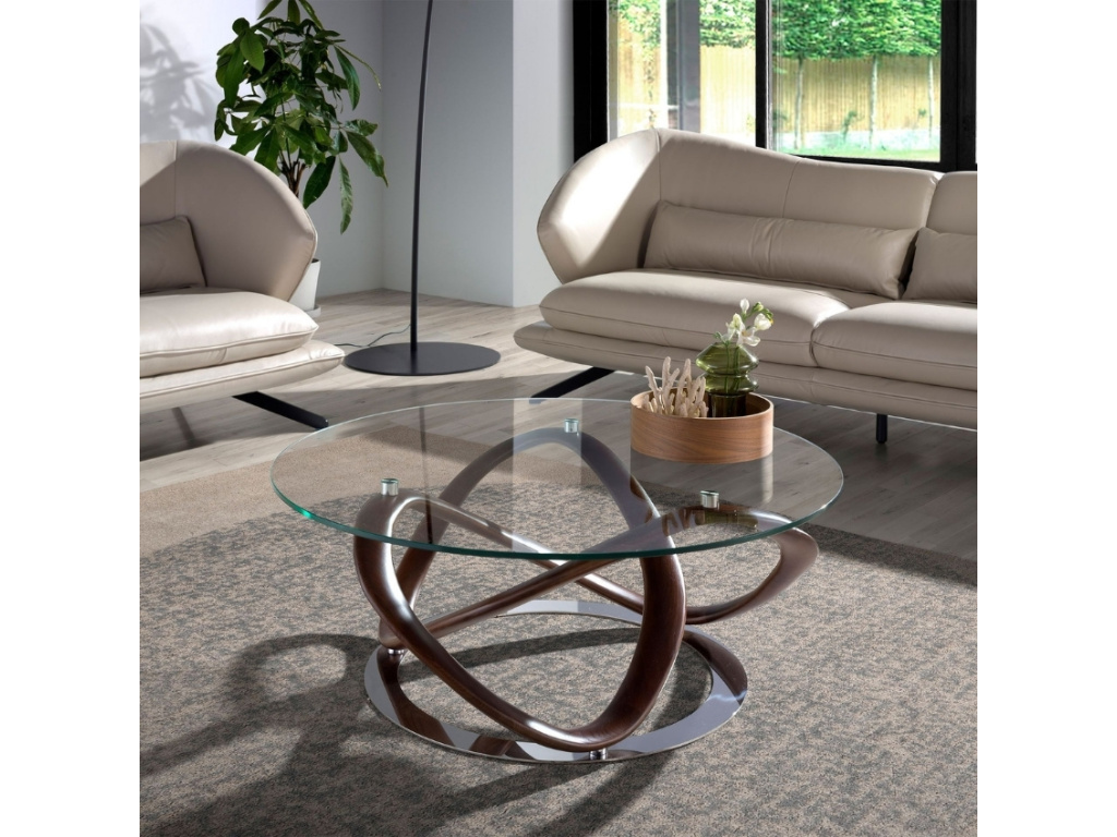 Tento elegantní konferenční stolek se stane šperkem vašeho obývacího pokoje. Průzračná deska z tvrzeného skla vnese do prostoru lehkost a vzdušnost a originální dřevěná podnož v ořechovém odstínu dodá interiéru hřejivý akcent. Zakřivené linie v kombinaci se skleněnou deskou vytváří poutavý designový prvek, který přitáhne pozornost. Ideální volba pro milovnici moderního designu, kteří oceňují spojení estetiky s funkčností. Stolek skvěle doplní interiér inspirovaný současným minimalismem či nadčasovým glamour stylem.