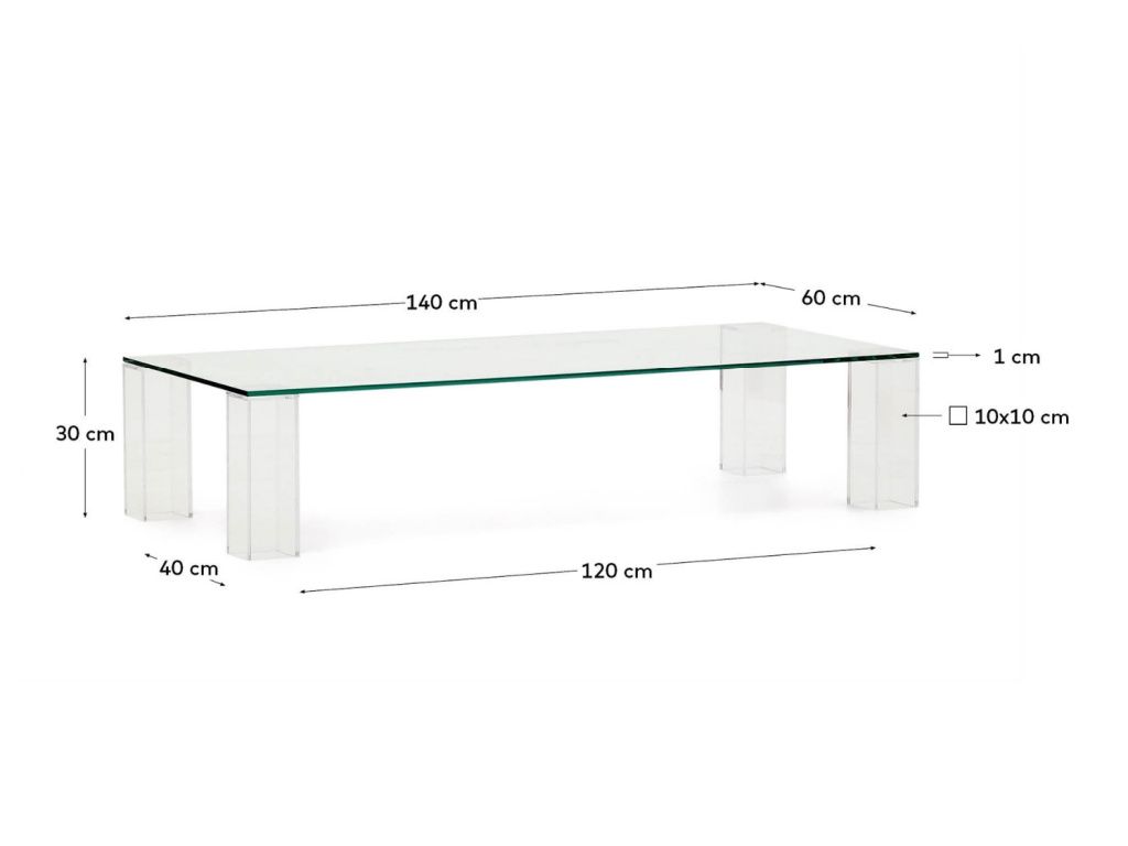 Skleněný konferenční stolek Kave Home Adularia 140 x 60 cm