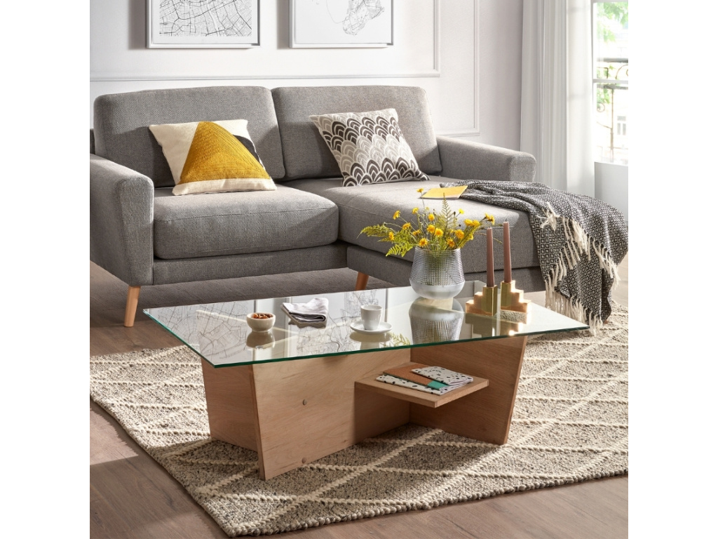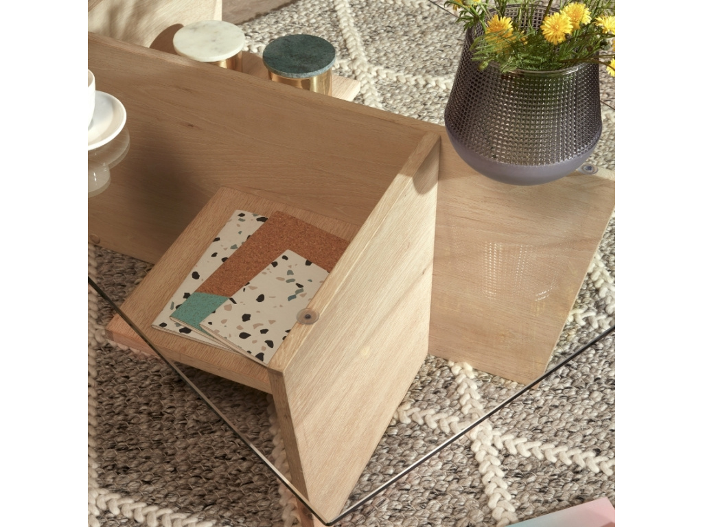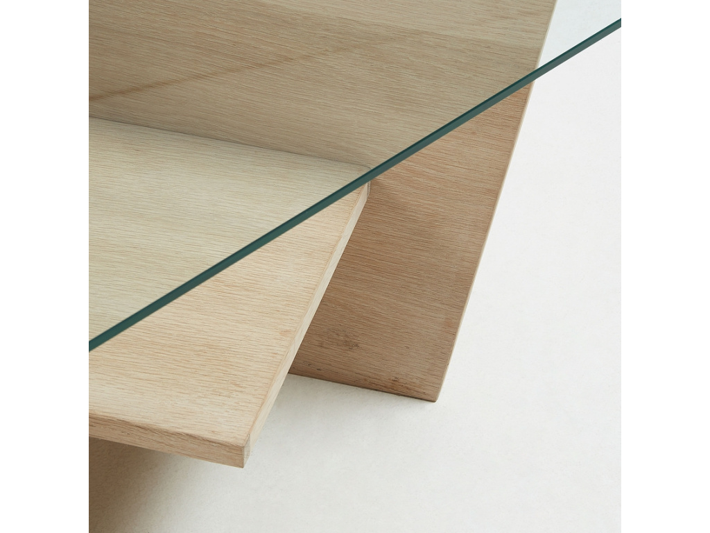 Podívám seSkleněný konferenční stolek Kave Home Balwind s dubovou podnoží 110 x 60 cm
