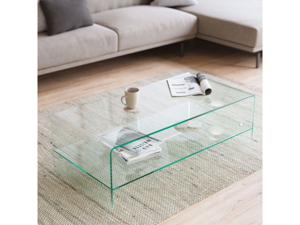 Designový skleněný konferenční stolek Kave Home Burano vnese do vašeho obývacího pokoje moderní a neobyčejně poutavý prvek. Stolek je vyroben z jednoho kusu ohýbaného tvrzeného skla v transparentním provedení a působí tak velmi elegantně a lehce. Minimalistické zpracování skla s čistými a zaoblenými liniemi vytvoří z vašeho menšího pokoje prostornější a světlejší místnost. Přestože stolek Burano vypadá velmi křehce, splňuje nároky nejen na design, ale i na kvalitu.
