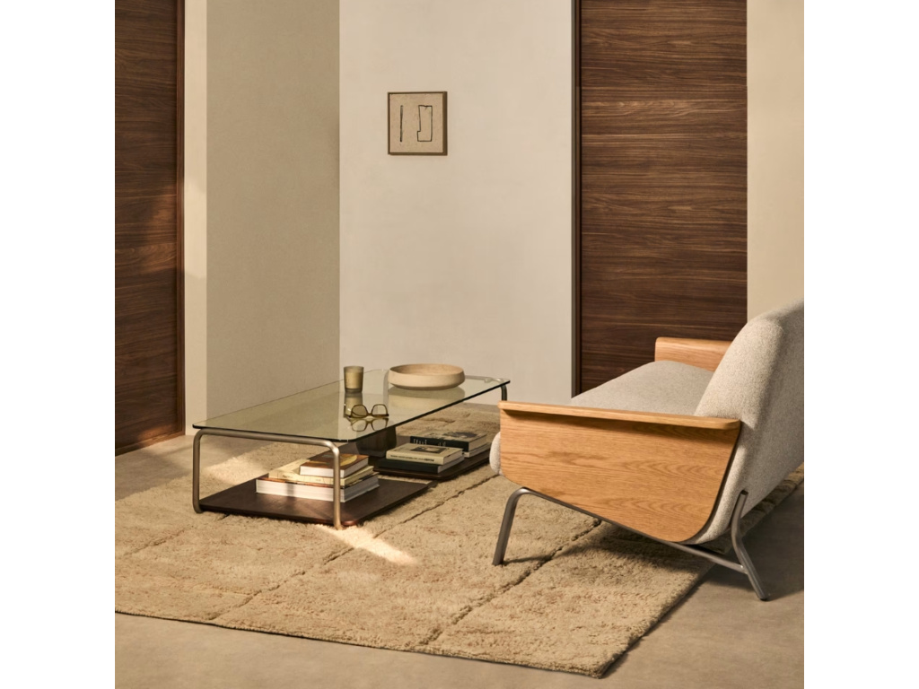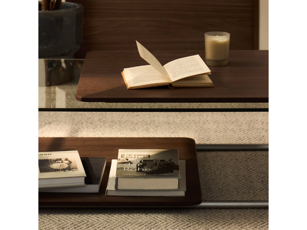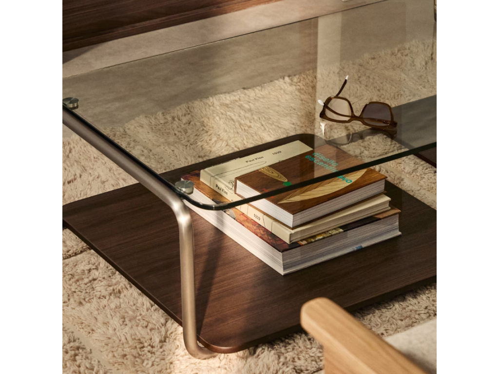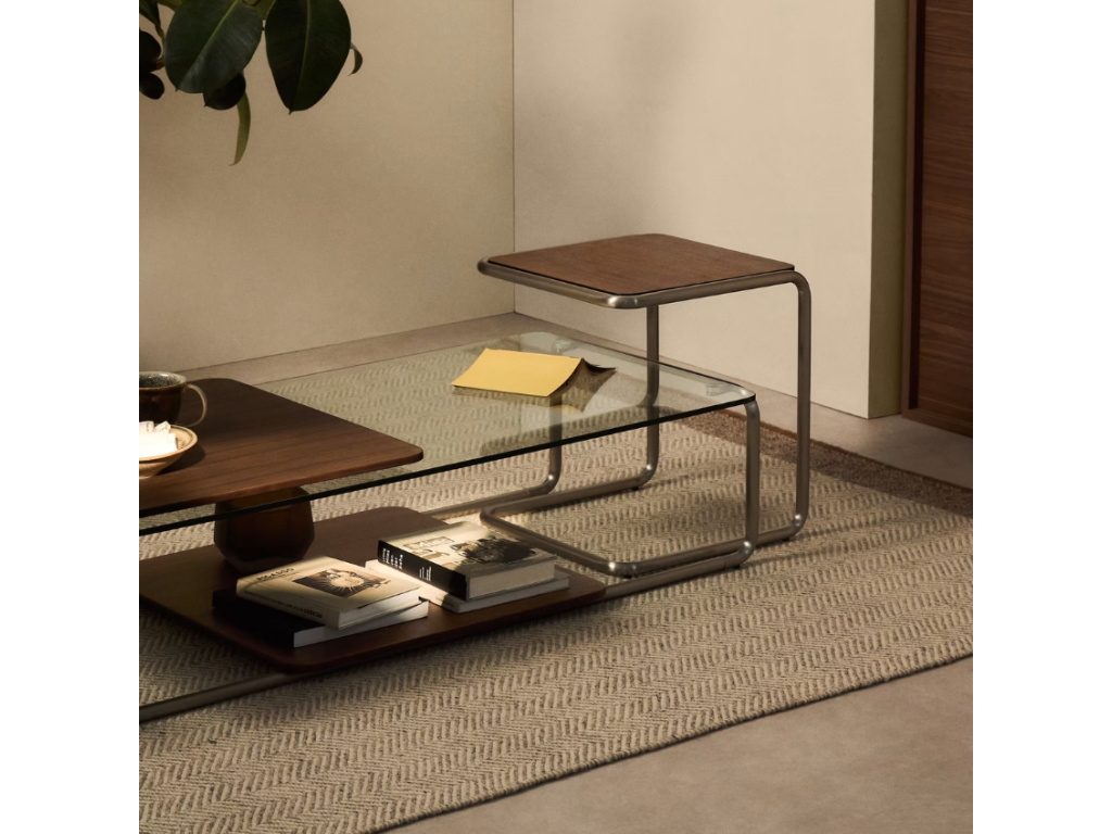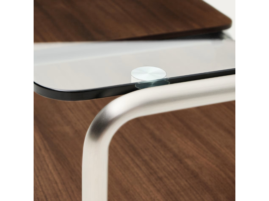 Stolek Tarsel přináší reinterpretaci elegance poloviny 20. století prostřednictvím současného designového jazyka, který dokonale vyvažuje funkčnost a vizuální sofistikovanost. Jeho vrchní deska z transparentního tvrzeného skla může být kdykoliv doplněna jedním ze dvou podnosů z ořechové dýhy, které jsou v případě nepotřeby odloženy na podnoži, kde poslouží jako praktické odkládací místo. Podnož má podobu trubkové konstrukce, která je vyrobena z nerezové oceli s kartáčovanou úpravou, která účinně redukuje viditelnost otisků prstů. Tarsel lze navíc kombinovat se stejnojmennou lavicí nebo dvojicí odkládacích stolků a docílit tak perfektně sladěného interiéru. Díky nastavitelným prvkům na podnoži se snadno přizpůsobí i nerovným podlahám, čímž zajišťuje stabilitu a komfort v každém prostoru – ideální volba pro stylové a flexibilní bydlení.