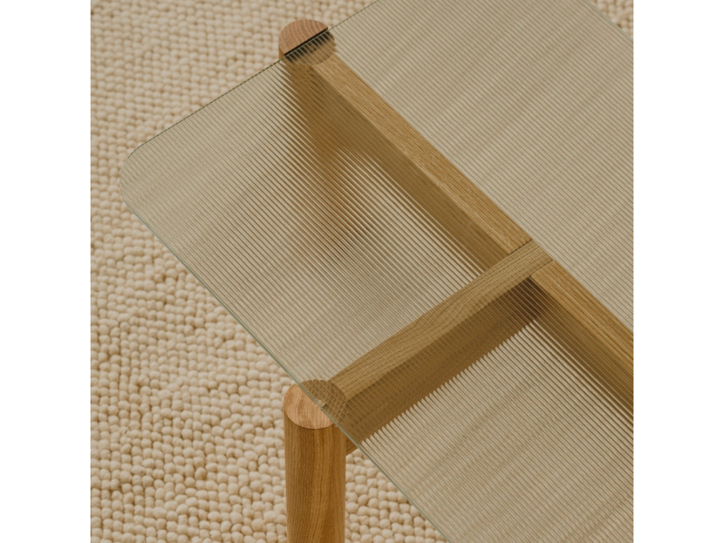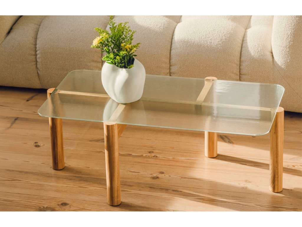 Konferenční stolek Kob je dokonalým spojením vzdušnosti a přírodního tepla. Kombinace čiré skleněné desky a pevné dubové podnože vytváří vyvážený kontrast – subtilní a zároveň výrazný. Díky transparentnímu povrchu působí stolek lehce, opticky nezatěžuje prostor a nechává vyniknout krásu dřevěné konstrukce. Kob se hodí do moderních i nadčasově laděných interiérů, kde oceníte jeho jemný design a funkční eleganci. Bude ideální jako doplněk k pohovce, do obývacího pokoje nebo čtecího koutku, kde vynikne nejen svou formou, ale i materiálovou kvalitou.
