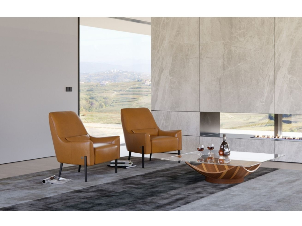 Designový konferenční stolek Miotto Eliseo opravdu zaujme na první pohled, a to zejména díky propojení transparentní skleněné desky a originálně řešené podnože z ořechové dýhy přírodního vzhledu. Atraktivní spojení dřeva a skla podtrhuje jedinečnost tohoto stolku, který dodá vašemu obývacímu pokoji moderní a osobitý styl. Konferenční stolek Eliseo se tak stane výrazným a nepřehlédnutelným prvkem každého interiéru.