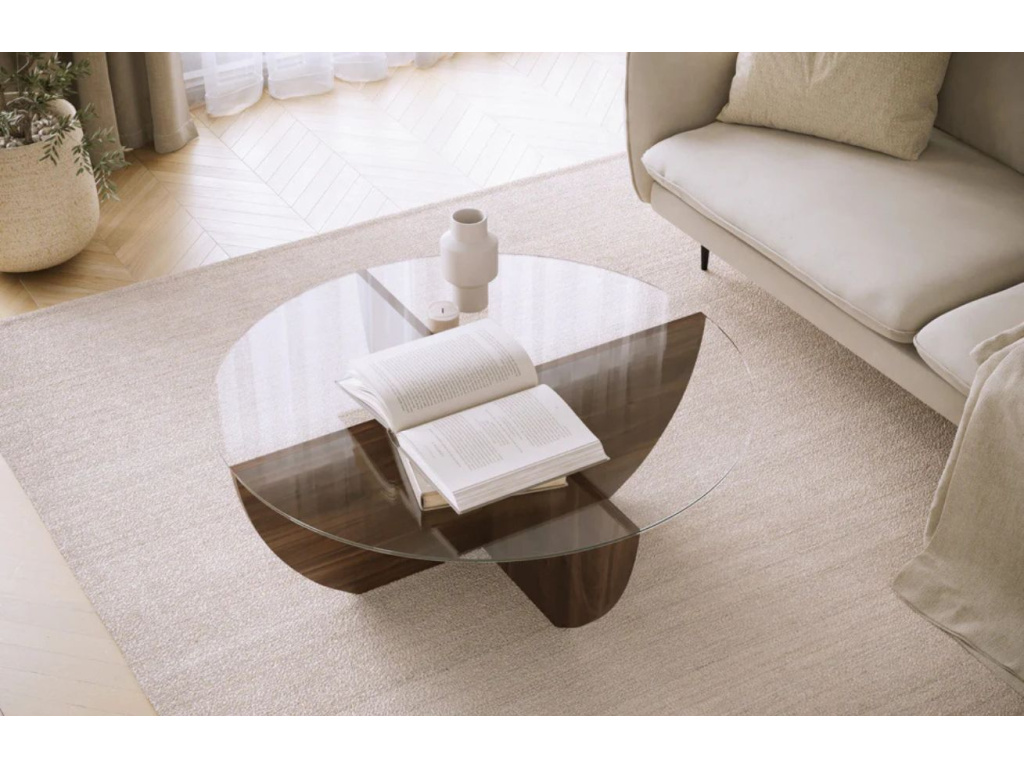 Kulatý konferenční stolek Astrid dodá vašemu interiéru jedinečný šmrnc a styl. Jeho elegantní kombinace dvou materiálů vytváří harmonický vzhled, který okamžitě zaujme. Průhledná deska z tvrzeného skla působí vzdušně a moderně, zatímco podnož z dubové mořené dýhy, které se rafinovaně protínají uprostřed, poskytují stabilní a originální základnu. Tento designový kousek vyniká svou minimalistickou elegancí a dokonale zapadne od moderních po klasické styly. Dodejte stolku Astrid ještě větší šarm pomocí dekorativních mís nebo podtácků, které elegantně uspořádají drobnosti. Vázy s čerstvými květinami podtrhnou vzdušnost skleněné desky, zatímco stylové podtácky ochrání povrch stolku. Celkovou kompozici můžete podtrhnout kobercem sladěním s dekorativními polštáři na pohovce, které sjednotí vzhled celého obývacího prostoru.