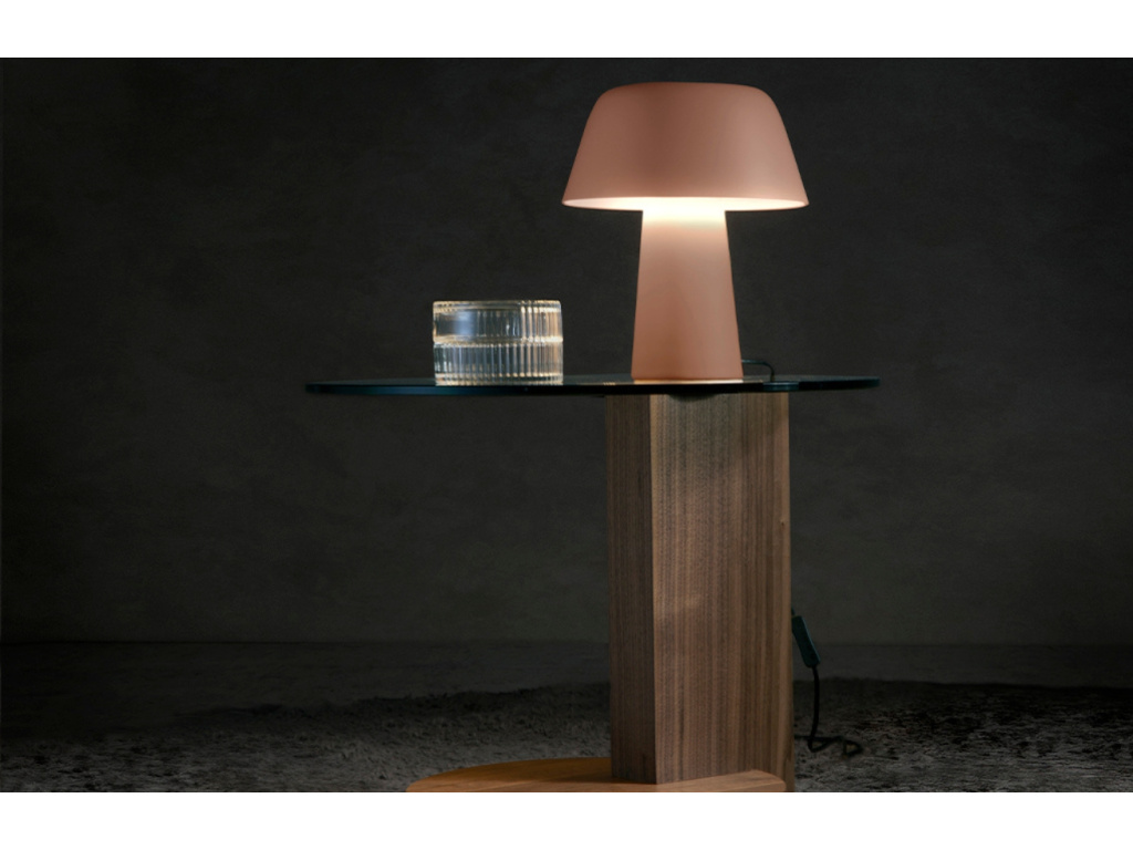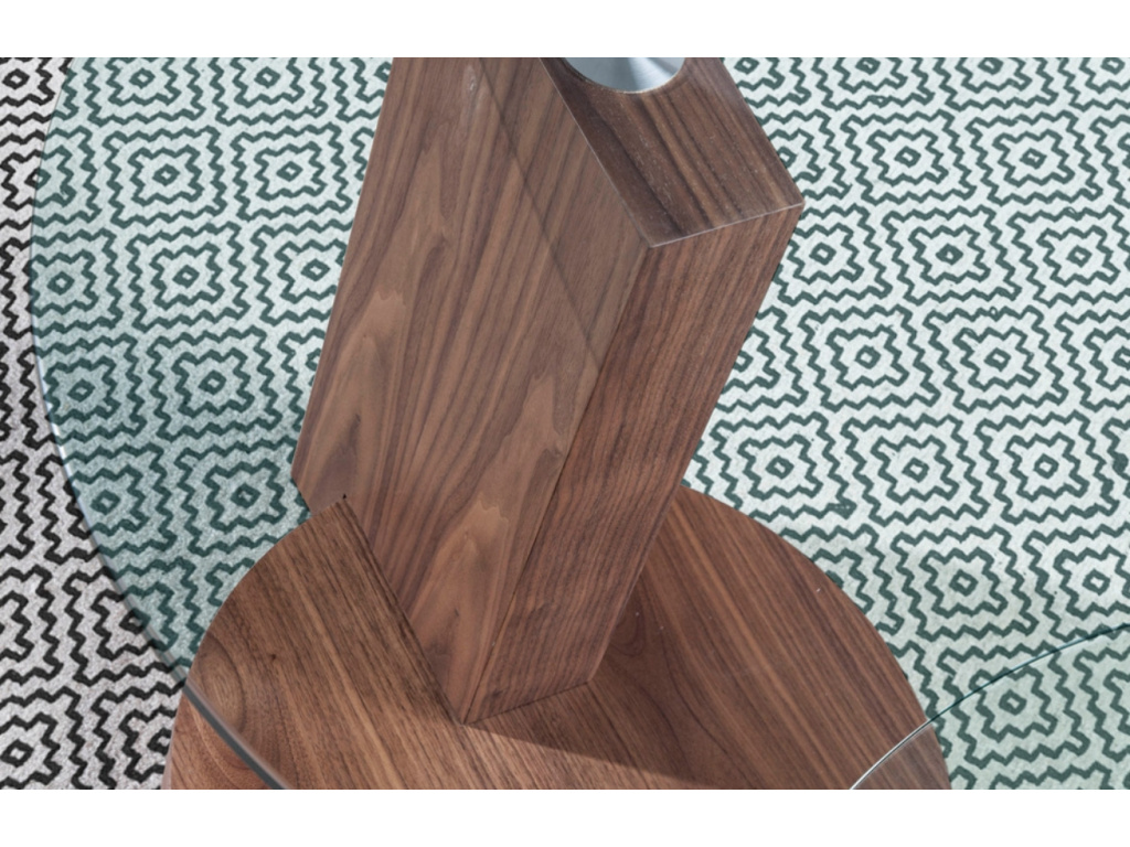 Odkládací stolek Angel Cerdá vnese do vašeho interiéru svěží vzdušný prvek a kontrast, který vytváří kombinace masivní ořechové podnože a desky z čirého tvrzeného skla. Kulatý tvar desky se zrcadlí v podstavě a celkový vzhled je tím kompaktně sjednocený. Postranní umístění podnože umožňuje využít podstavu současně s horní deskou jako další plochu pro umístění dekorací nebo jako odkládací plochu.