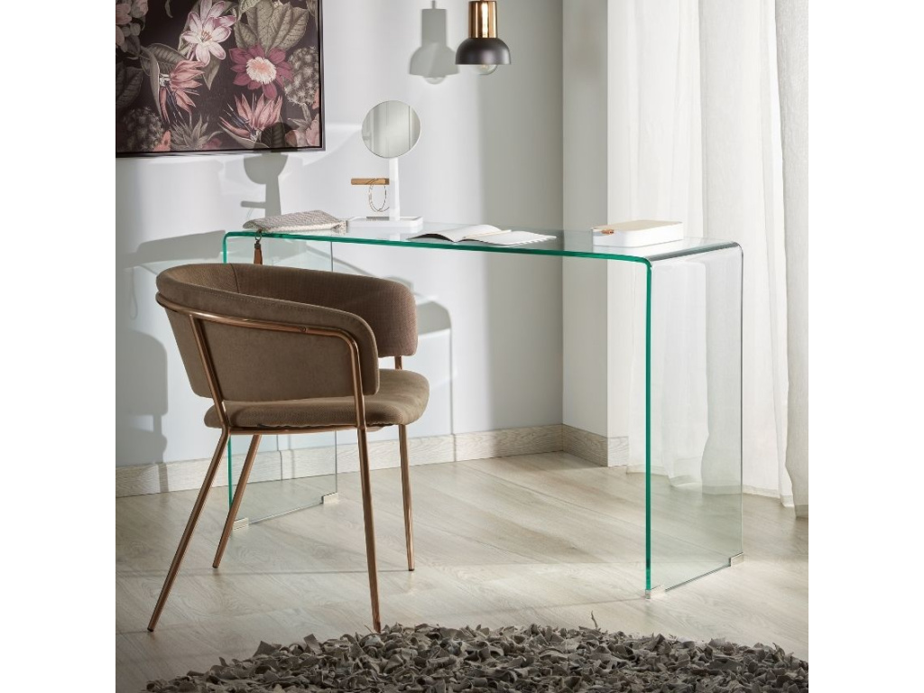 Designový skleněný toaletní stolek Kave Home Burano vnese do vašeho interiéru moderní a neobyčejně poutavý prvek. Stolek je vyroben z jednoho kusu ohýbaného tvrzeného skla v transparentním provedení a působí tak velmi elegantně a lehce. Minimalistické zpracování skla s čistými a zaoblenými liniemi vytvoří z vašeho menšího pokoje prostornější a světlejší místnost. Přestože stolek Burano vypadá velmi křehce, splňuje nároky nejen na design, ale i na kvalitu.