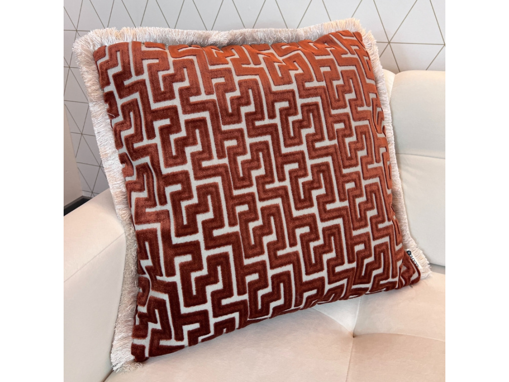 Více infoSkořicově hnědý sametový povlak na polštář Labyrinth 50 x 50 cm s třásněmi