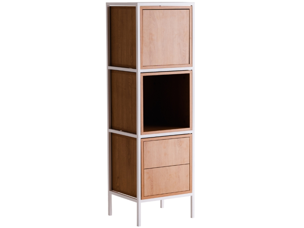 Kolekce modulárních úložných prostor Skipo představuje stylový nábytek, který si jednoduše nakombinujete podle vašich představ. Najdete v ní několik velikostí skříněk, které mohou být využity jako knihovny, komody, noční stolky nebo třeba TV stolky. Zkrátka je použijte tam, kde je potřeba! Spojení dubového dekoru a kovového rámu je nadčasové a skvěle zapadne do minimalistických i industriálních prostor. Skříňka Skipo disponuje jednou otevřenou a jednou uzavřenou policí a najdete v ní i dvě prostorné zásuvky. Dostupná je také v černém provedení.