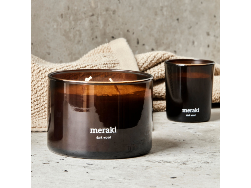 Ponořte svůj domov do teplé a příjemné atmosféry s vonnou svíčkou Dark Wood od značky Meraki. Kombinuje svrchní tóny rumu, černého pepře a růže, srdce muškátového oříšku, hřebíčku a ambry a základ ze santalového dřeva, cedrového dřeva a pačuli. Svíčka je vyrobena ze sójového vosku a hnědá sklenička vám po jejím dohoření doplní interiér o vkusnou dekoraci.