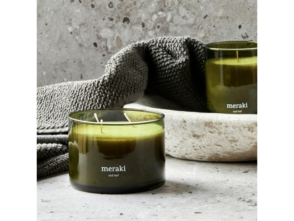 Udělejte si pohodlí a nechte se hýčkat příjemnou vůní svíčky Oud Leaf od značky Meraki. Vůně květin, oudu a santalového dřeva vás okouzlí a vy si ji můžete vychutnávat její přítomnost například v obývacím pokoji či v koupelně při relaxační koupeli. Svíčka je vyrobena ze sójového vosku a zelená sklenička doplní váš interiér o vkusnou dekoraci.