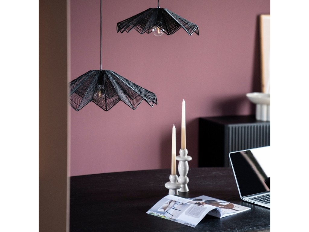 Závěsné světlo Varjo je fascinující kombinací minimalistického designu a vyplétaného stínidla z potaženého kovu. Tento jedinečný kousek okamžitě zaujme v obývacím pokoji nebo nad jídelním stolem, kde vytvoří příjemnou atmosféru a rozptýlené světlo. Vyberte si mezi jemnou starorůžovou nebo elegantní černou, abyste doladili váš interiér přesně podle vašich představ. Světlo Varjo je dokonalým doplňkem pro ty, kteří ocení detaily a chtějí zvýraznit svůj prostor originálním kouskem.
