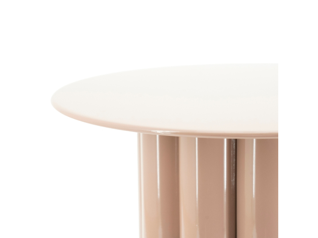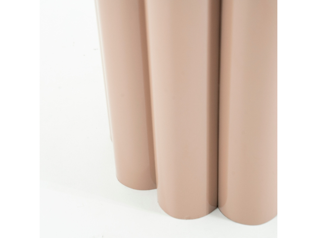 Stolek Olympa zaujme výraznou podnoží s válcovitým tvarováním, která mu dodává jedinečný charakter. Lakovaný kov zajišťuje odolnost a moderní lesklý povrch, který se bude vyjímat v interiérech s industriálním nebo futuristickým nádechem. Poslouží jako atraktivní základna pro vázy, mísy či jiné dekorace, které chcete vystavit. Olympa nejen zkrášlí váš obývací prostor, ale také dodá neotřelý designový prvek.
