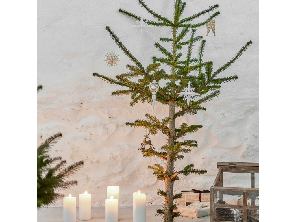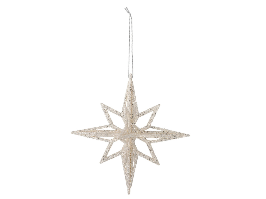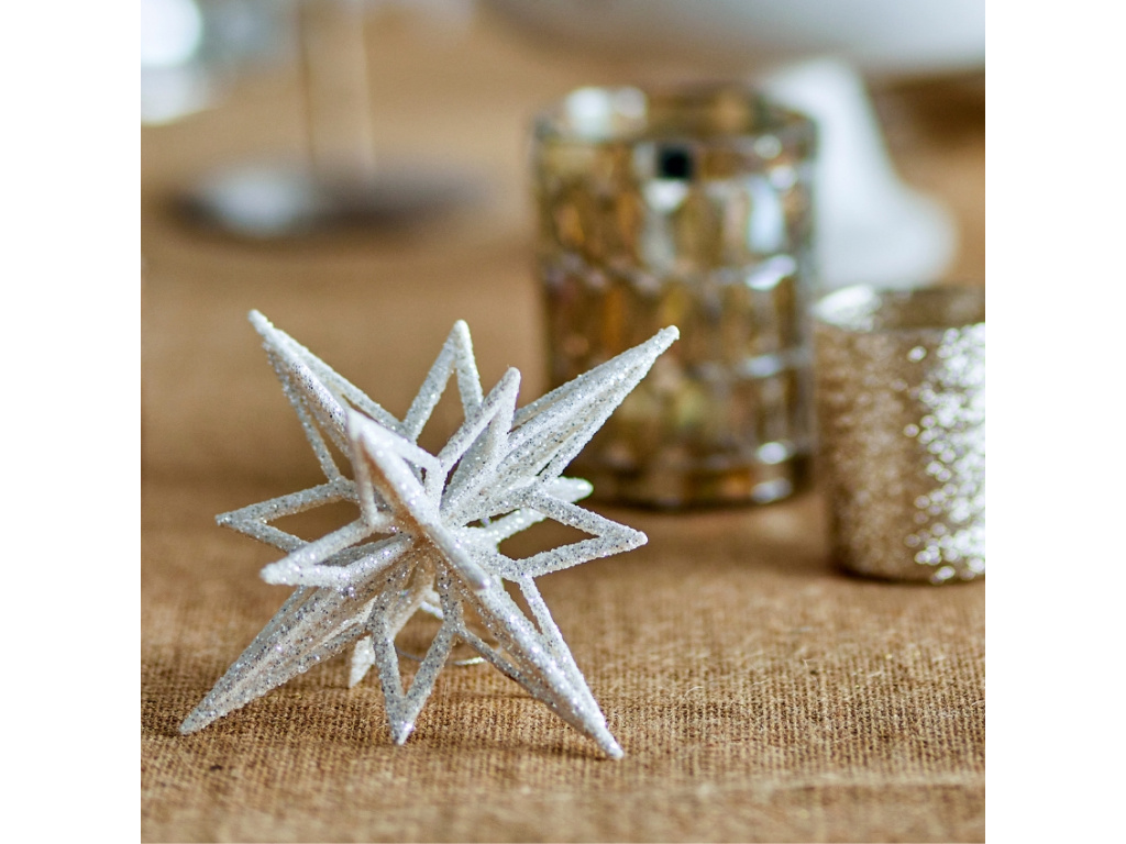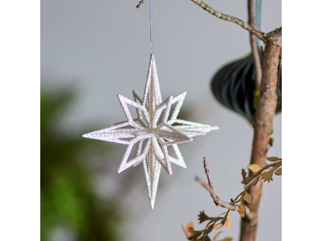 Vánoční ozdoba Chue je přesně ten detail, který dodá vašemu vánočnímu stromku nebo sváteční výzdobě zářivý a elegantní nádech. Díky lehkému plastovému provedení ji snadno zavěsíte i na ty nejjemnější větvičky, a tak je ideální volbou pro každého, kdo hledá stylovou, ale zároveň praktickou a bezpečnou dekoraci. Jemný stříbrný odstín krásně odráží světla svíček i řetězů a vytváří tak hřejivou slavnostní atmosféru. Ozdoba Chue se hodí nejen na stromek, ale i do vánočních aranžmá na stole či do oken, kde vynikne její decentní třpyt.