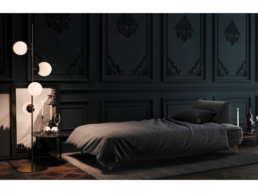 Stylová a luxusní designová pohovka DEVICHY Chloe se díky svému jedinečnému a minimalistickému tvaru stane nepřehlédnutelnou součástí vaší domácnosti. Stabilní kovová podnož ve zlaté barvě je dokonale doplněna o čalounění z kvalitní sametové tkaniny v stříbrně šedém provedení, která je charakteristická pro svou nadprůměrnou odolnost a speciální vodě odpudivou úpravu. Po odebrání dekorativních i opěrných polštářů lze z pohovky udělat lůžko, a tak se i vaše návštěva pohodlně a stylově vyspí.