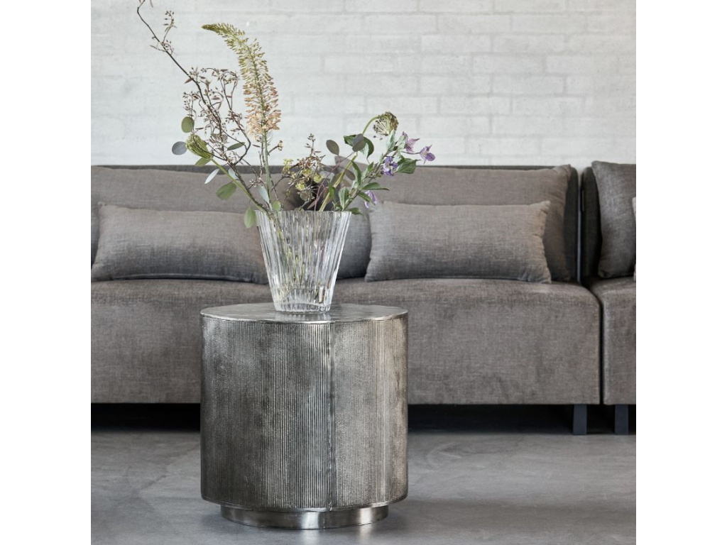 Odkládací stolek Rota je vyrobený z hliníku a svým stříbrným zbarvením skvěle ozvláštní interiér a vnese do něj eleganci s nádechem surovosti. Skvěle vyniknou také jeho zdobené boky, na kterých najdete drobné drážky. Slušet mu to bude například s vázou s květinami. Doplnit ho můžete odkládacím stolkem ze stejnojmenné série - oba jsou dostupné také ve zlatém barevném provedení.