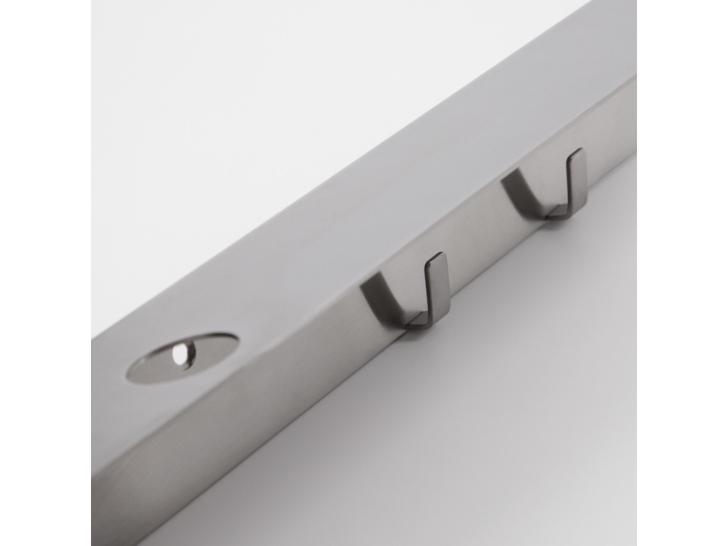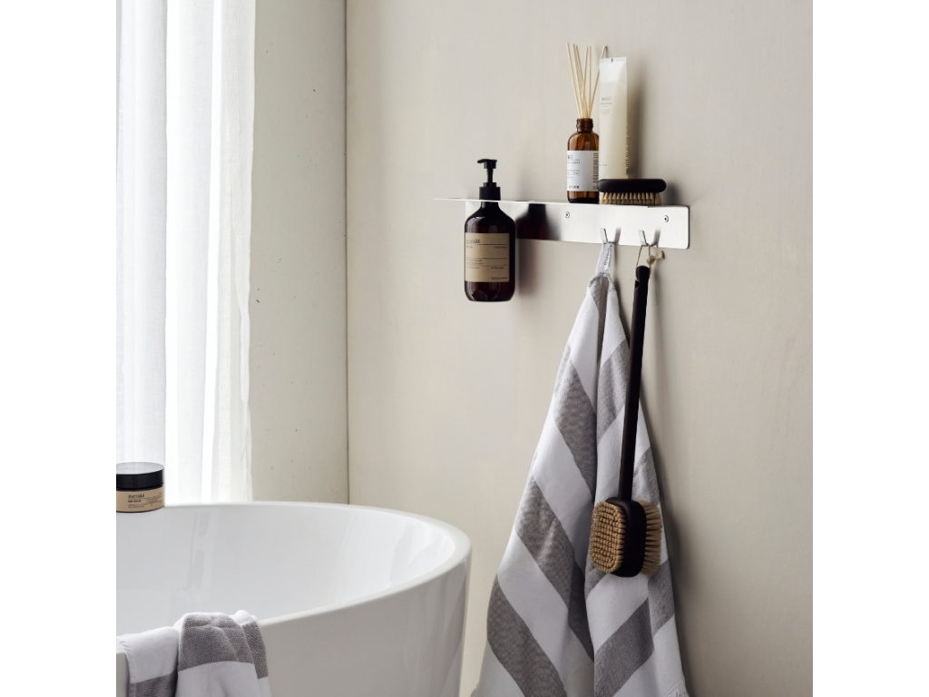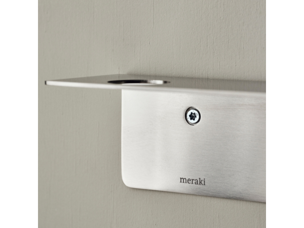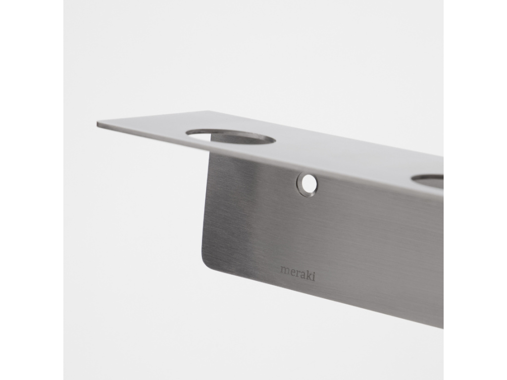 Nástěnný držák Supply od Meraki bude vaším pomocníkem v koupelně či v kuchyni. Bude se vám hodit k uskladnění vašich oblíbených krémů nebo mycích prostředků či k zavěšení utěrky a různých doplňků. Najdete na něm tři otvory na lahve Meraki a dva háčky. Supply je vyrobený z nerezové oceli s broušeným stříbrným povrchem, který nepropustí žádnou vodu. Držák bude stylovým doplňkem a zároveň pomůže udržovat pořádek.